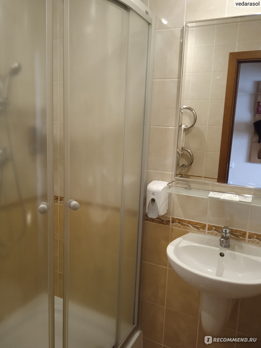 Санузел чистый, сантехника не текла, жидкое мыло было в настенном дозаторе, были предоставлены 3 полотенца, шампунь, гель для душа и одноразовая шапочка для душа.