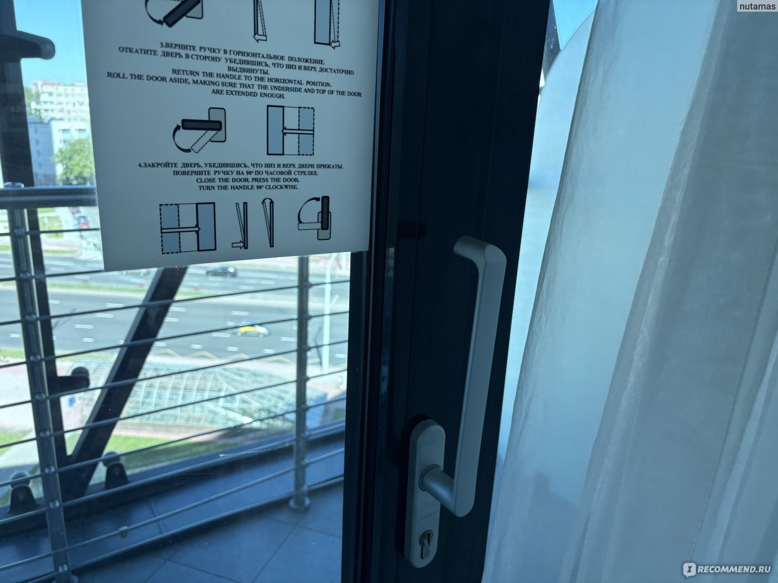 Ручка двери на балкон была очень необычная, хорошо рядом была инструкция.