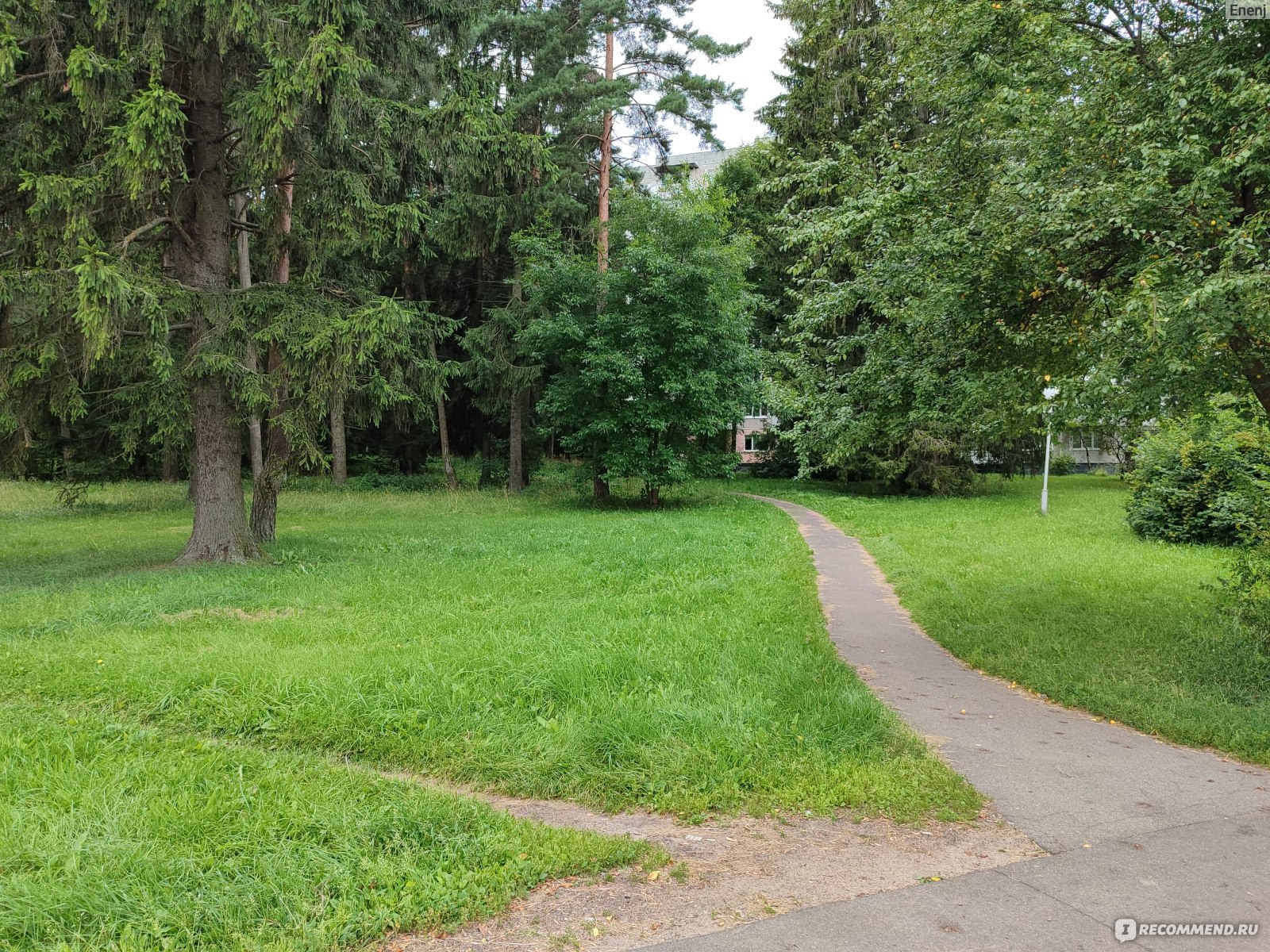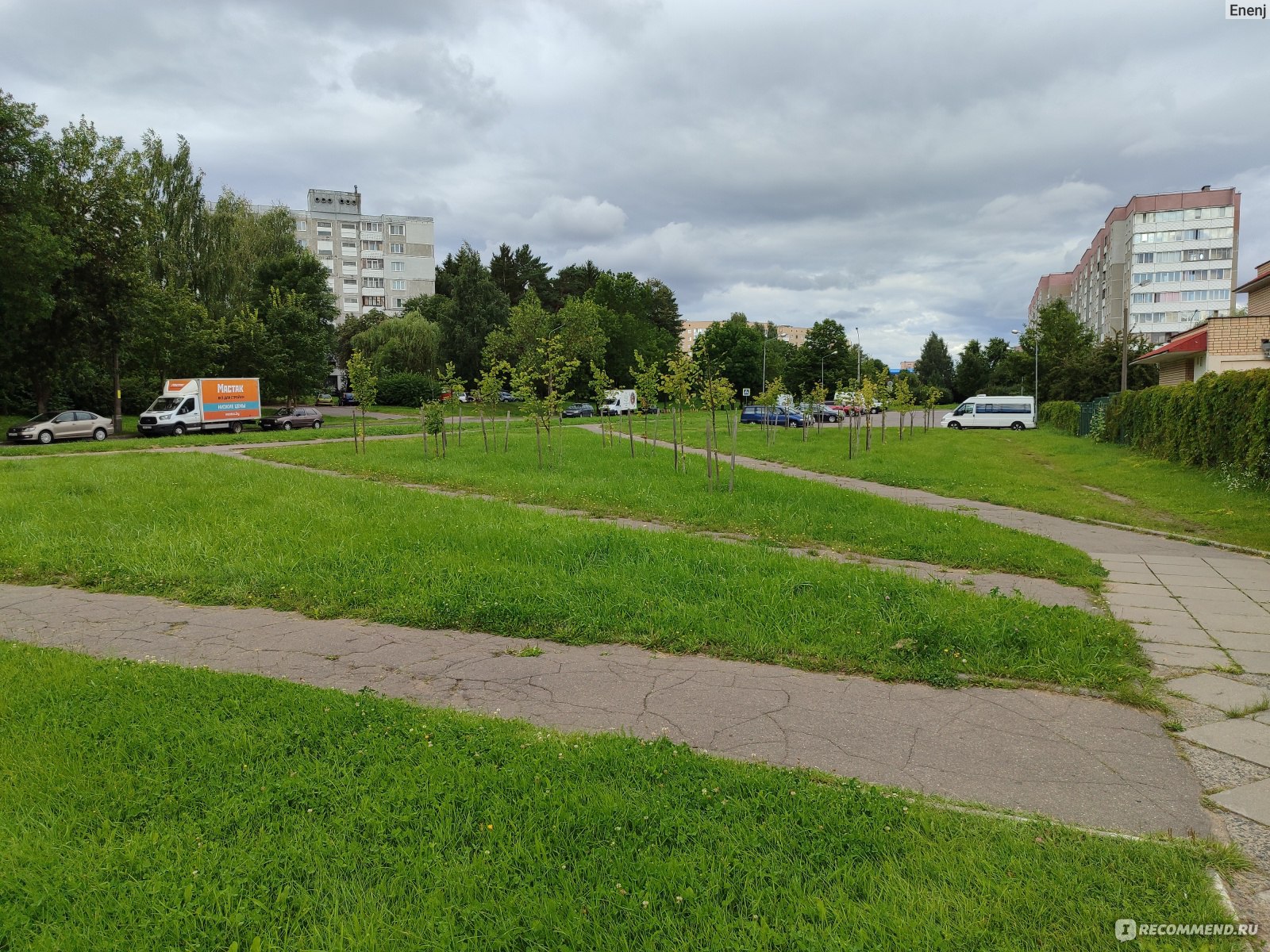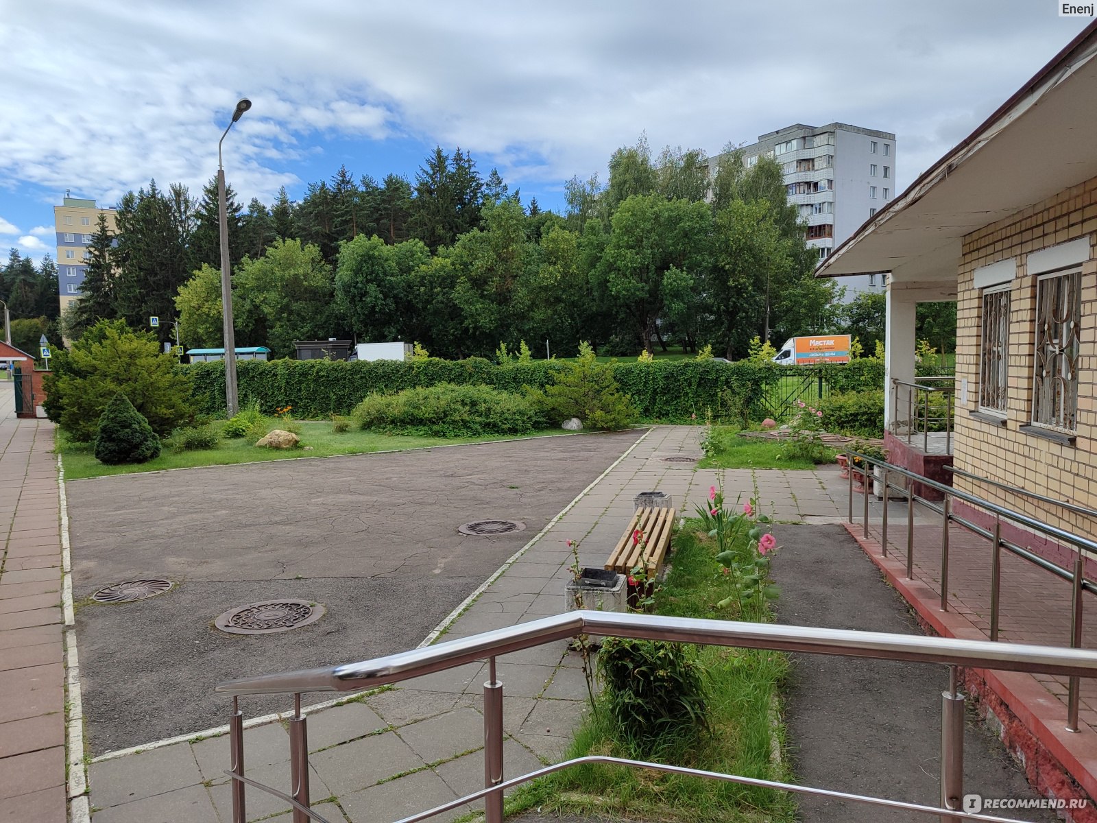Вокруг здания небольшая территория. На ней особо не погуляешь, но чуть дальше есть лавочки и мангалы.