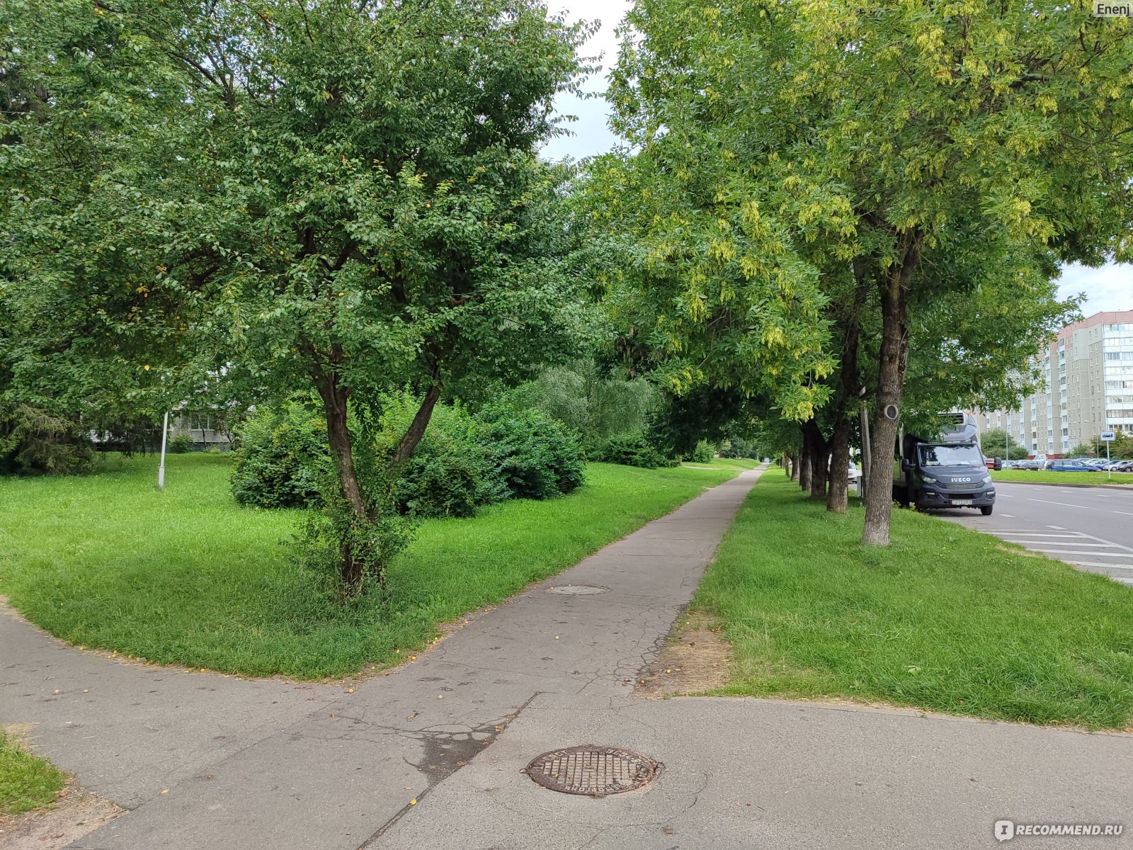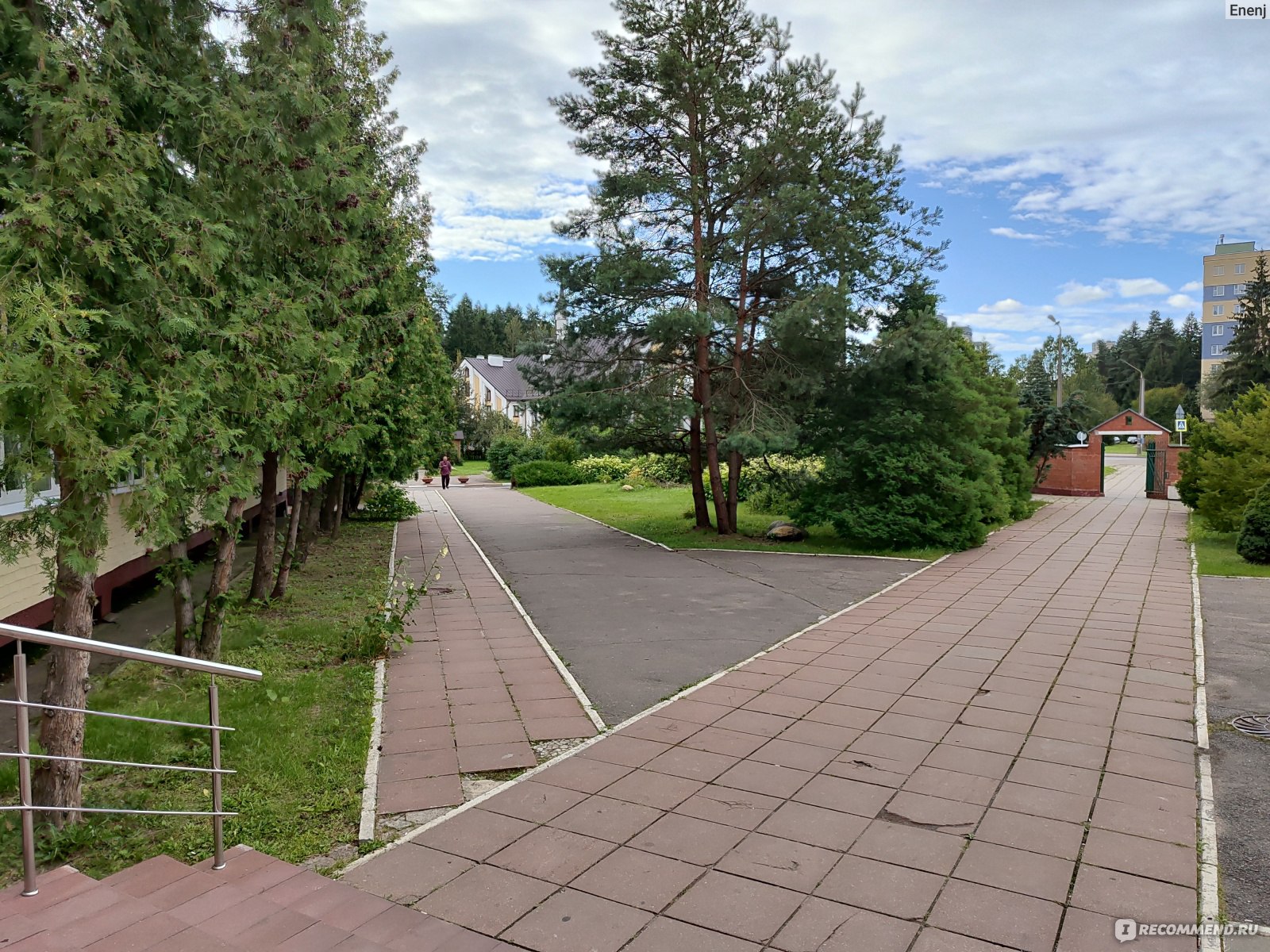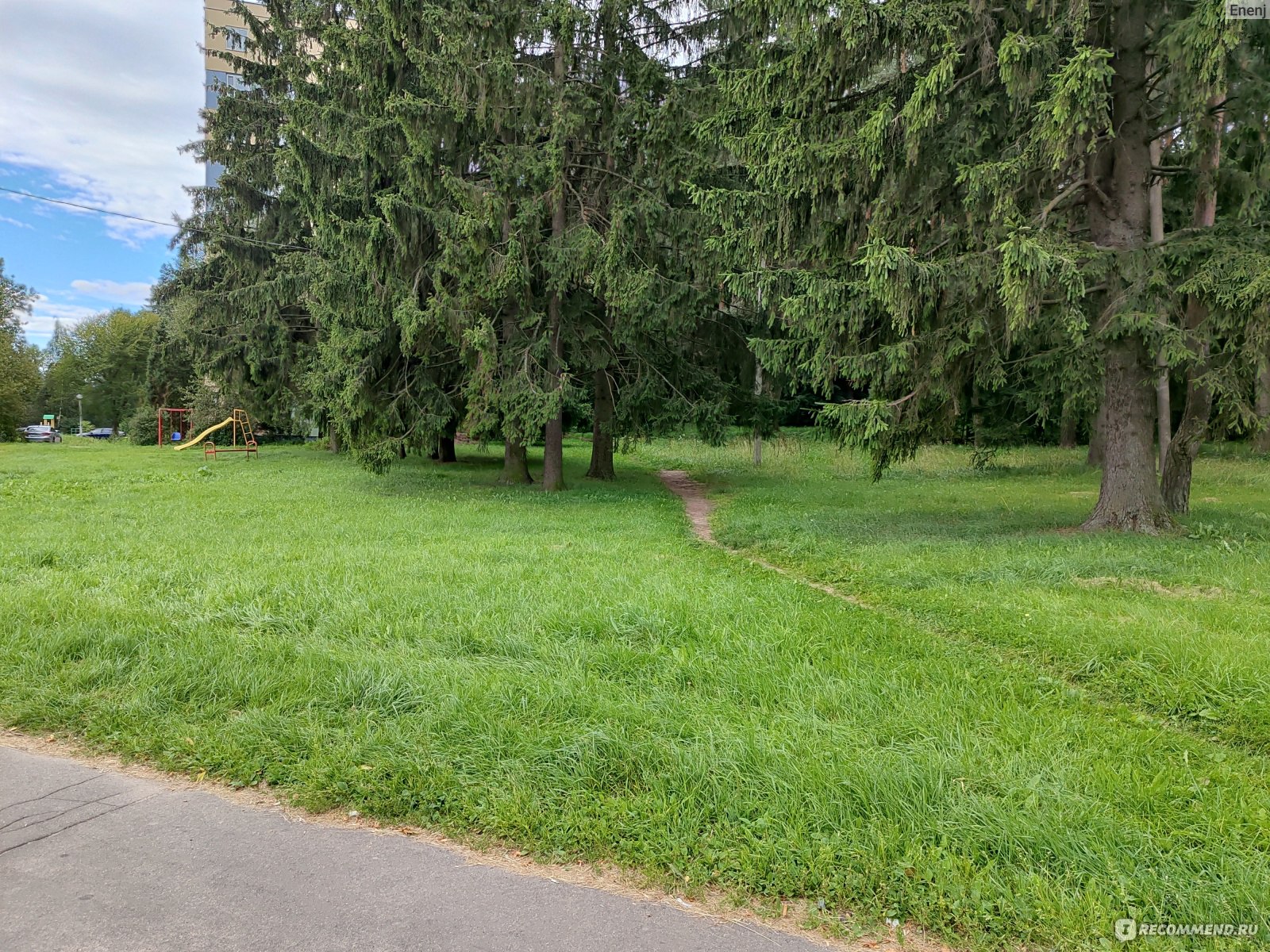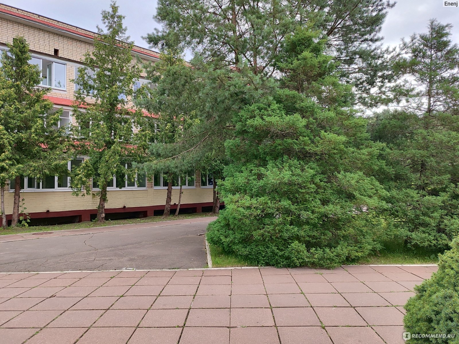 Вокруг здания небольшая территория. На ней особо не погуляешь, но чуть дальше есть лавочки и мангалы.