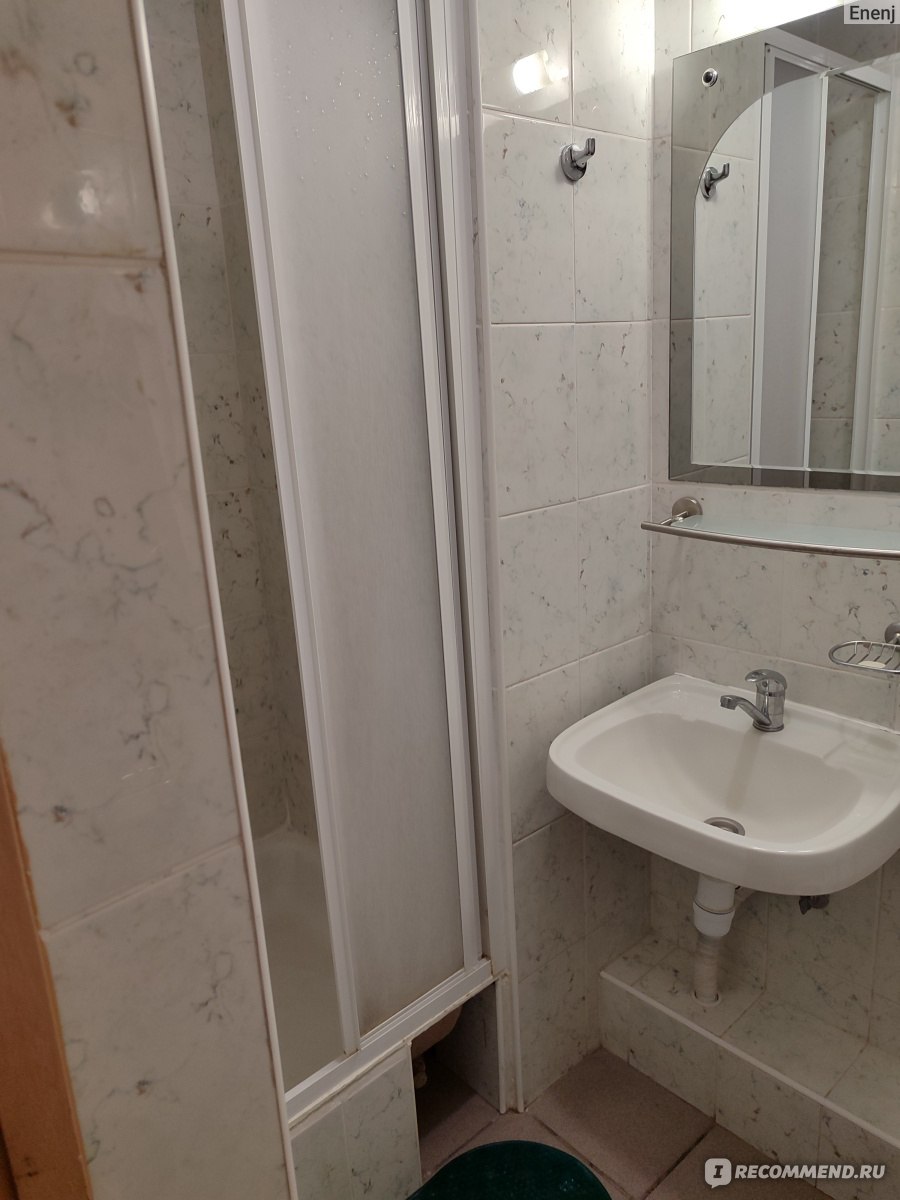 В душевой в принципе всё работает исправно. Ручка у крана в раковине двигается тяжеловато. Если хотите мыться тёплой водой в душе, то достаточно включить только горячую воду. Она не горячая, а тёплая. Держатель для лейки находится слишком высоко и не регулируется.