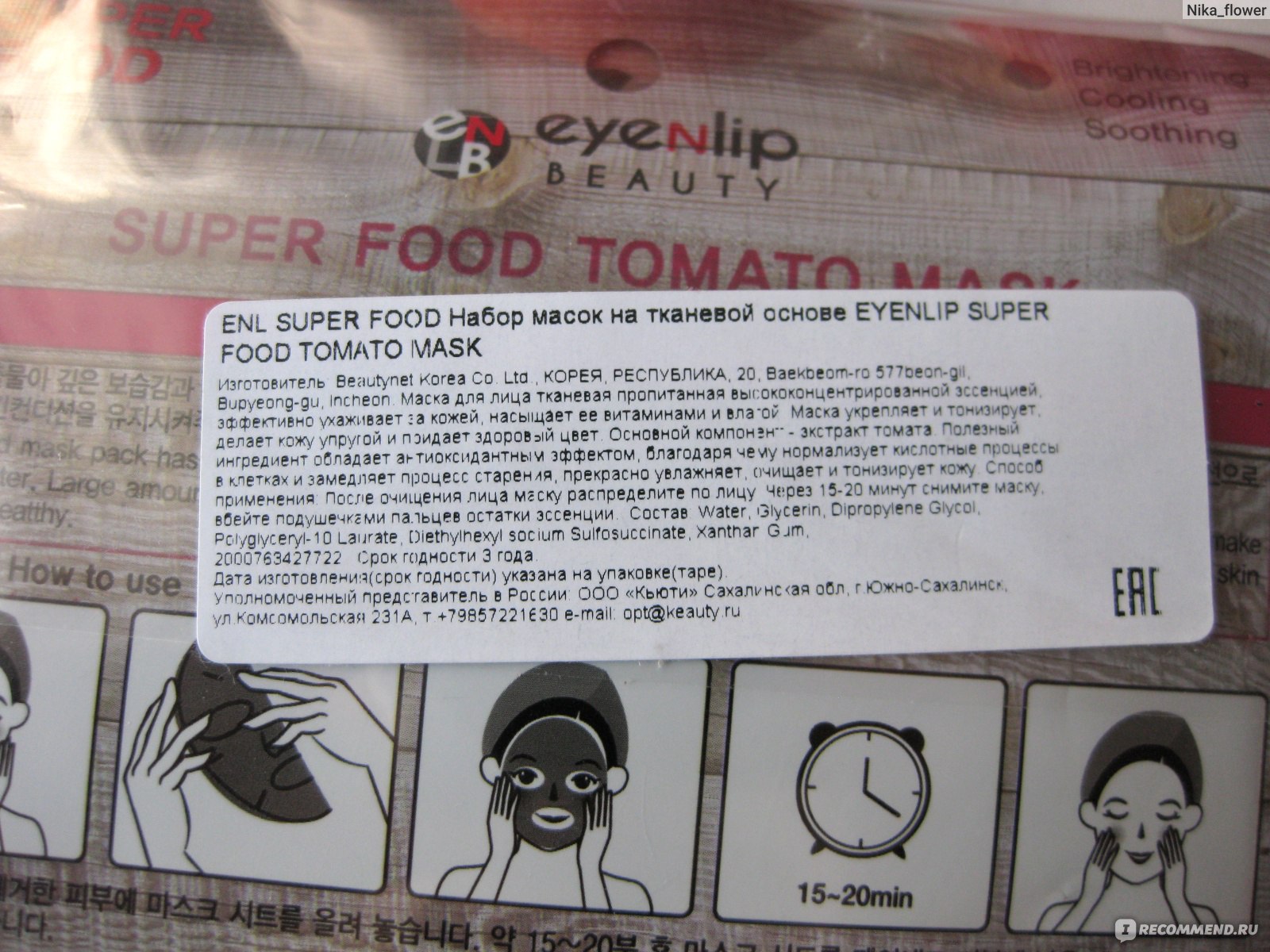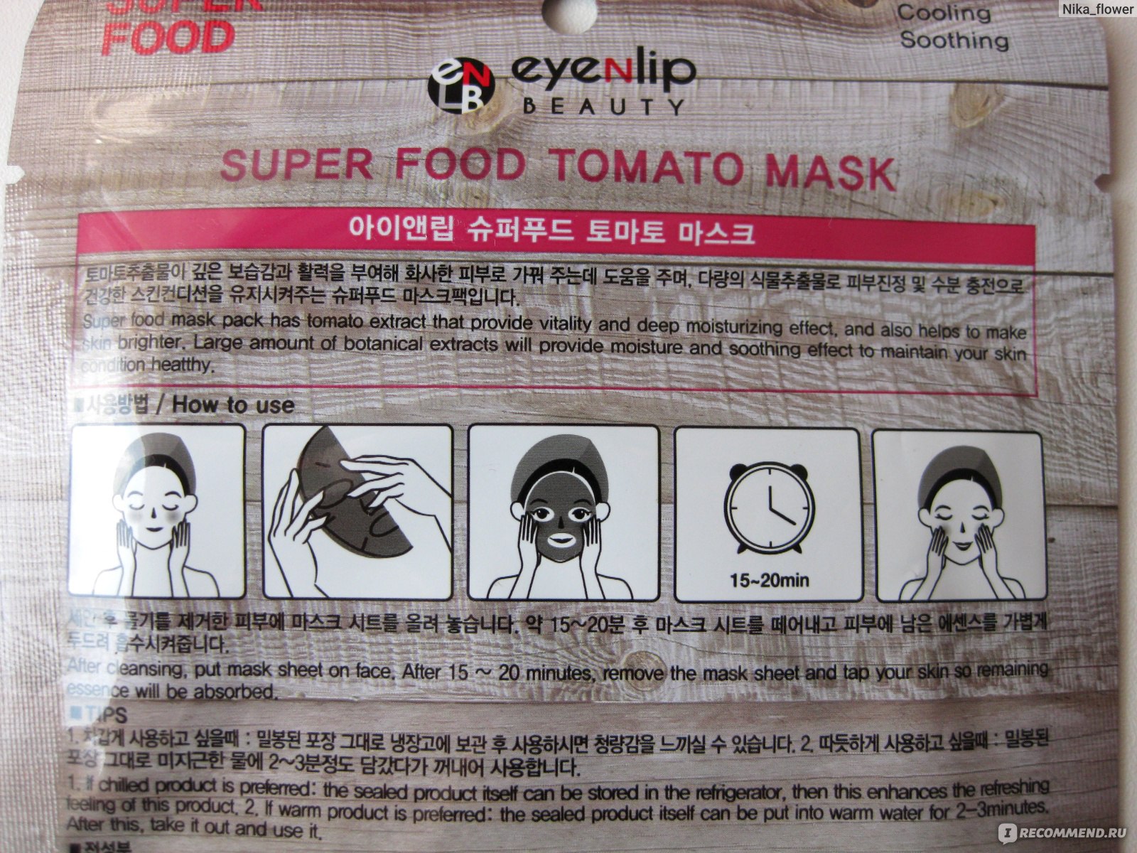 Мои впечатления от использования тканевой маски для лица Eyenlip Super food Tomato mask