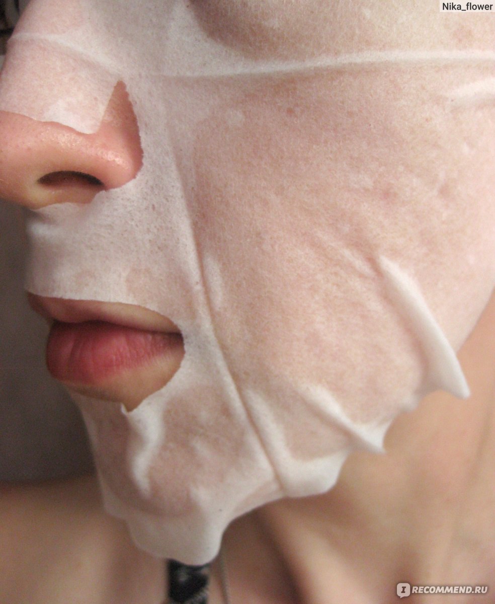 Наношу на чистое, сухое лицо и держу 20 минут. Маска равномерно распределяется, без сильных заломов и складок. Остатки не смываю, через несколько минут эссенция впитывается. Липкости или жирности не оставляет.