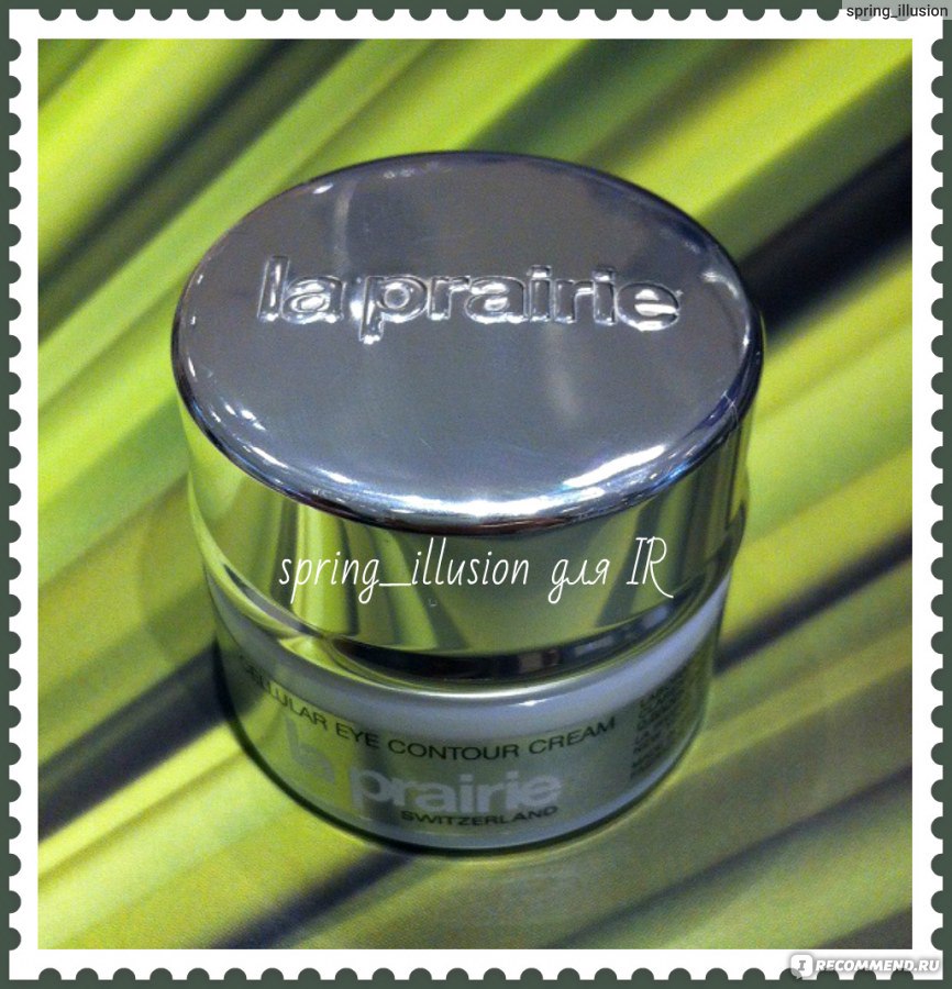 Текстура La Prairie Cellular Eye Contour Cream Плотный белый крем с явственной парфюмерной отдушкой. Крем густой, распределятся по коже не очень хорошо, лучше всего наносить его "вбивающими" движениями. Впитывается не сразу, минут 5 нужно подождать перед нанесением косметики, иначе она может скататься.