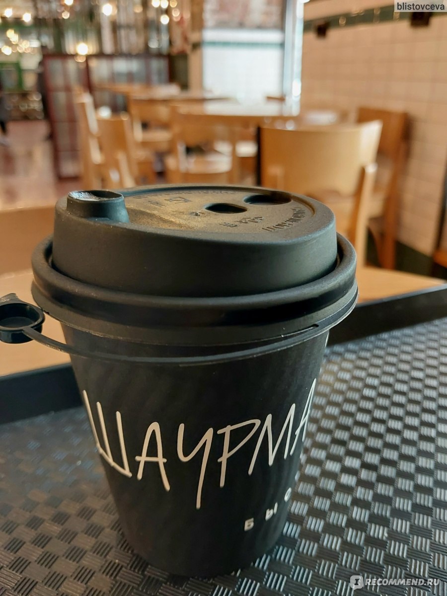 Для заказа необходимо подойти к кассе. Мы заказали три большие шаурмы из курицы на подносе, одну маленькую навынос и три кофе. После оплаты заказа дают два чека, на них указан номер заказа. Один из них нужно отдать на кухню. Этот момент мне не понравился, лучше бы это как-то автоматизировать. А вот кофе наливают из аппарата прямо у кассы.