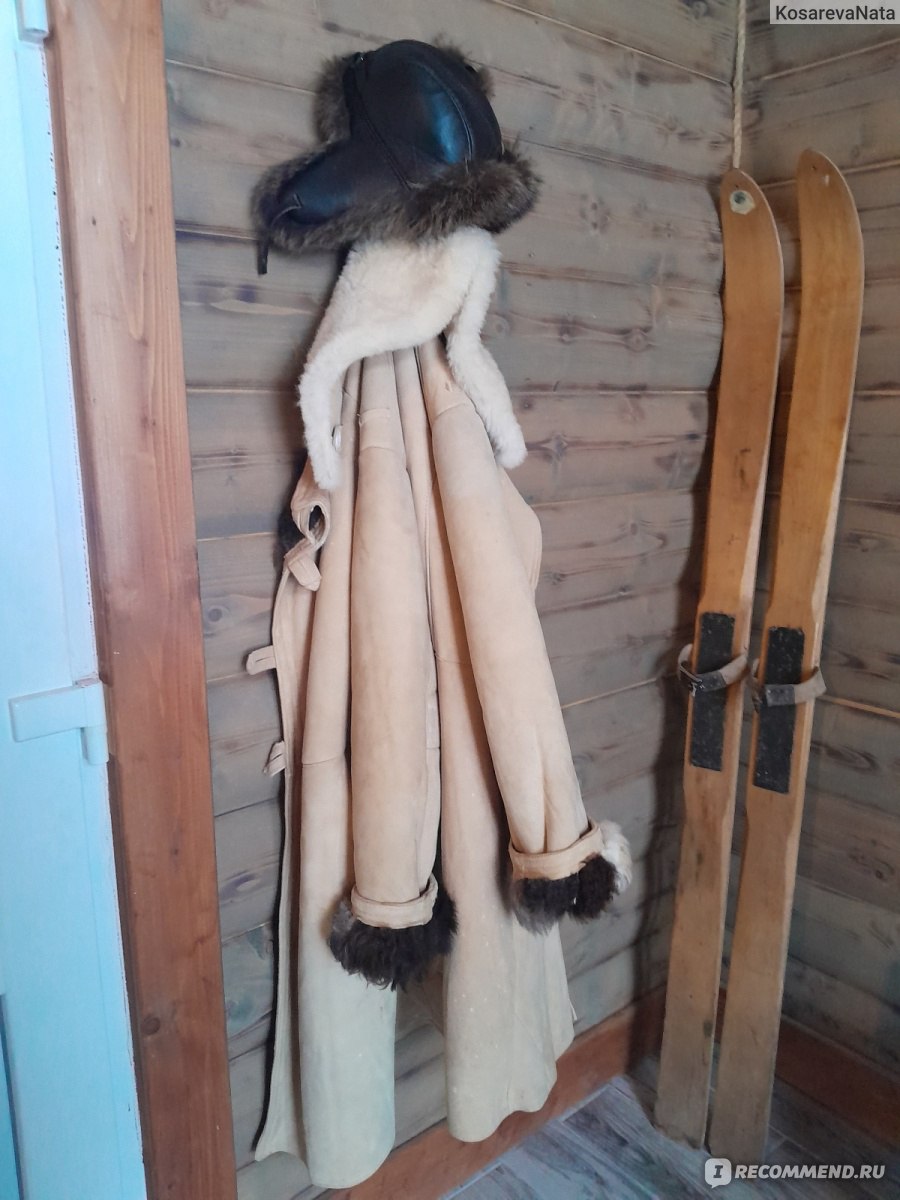 При входе стоят лыжи весит тулуп