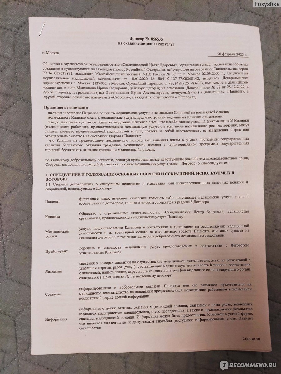 В итоге приехала я раньше аж на полчаса. В регистратуре на мое имя быстро оформили договор на оказание медицинских услуг,