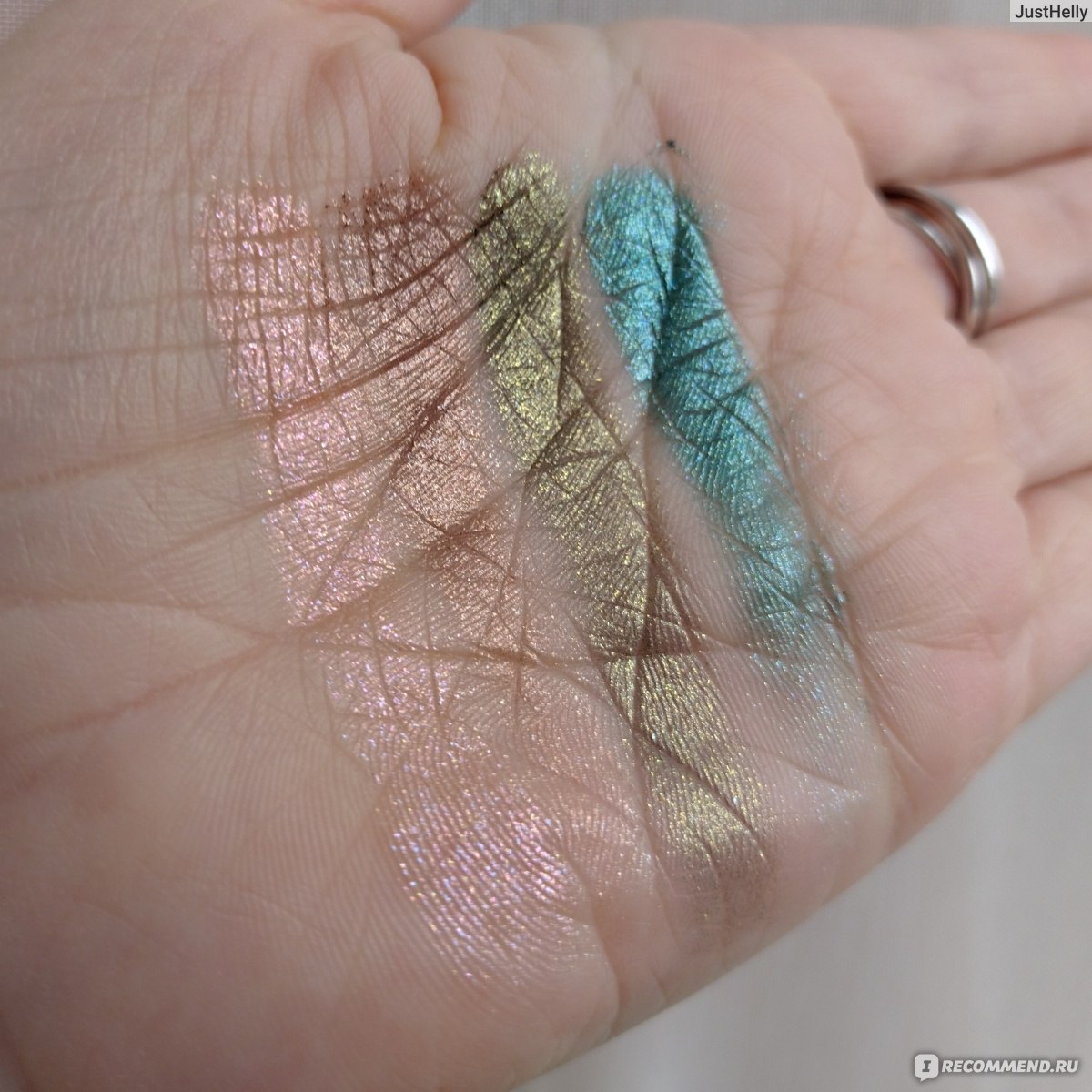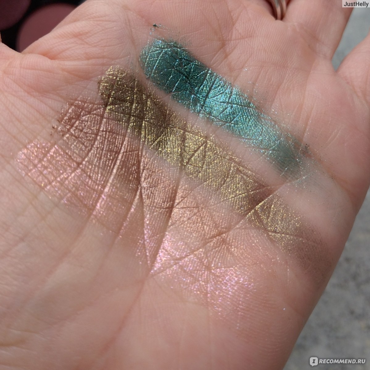 Они совсем разные. В Mothership XII болотный зелёный с золотом, в Mothership III золотисто-зелёный. Оба хороши по оттенку. Из Mothership III оттенок запечённый, он тоньше и аккуратнее ложится на веко, сглаживает его. Из Mothership XII решил более рыхлый, чтобы нанести плотно, нужно наслоить тени и тогда они могут скукожить веко.