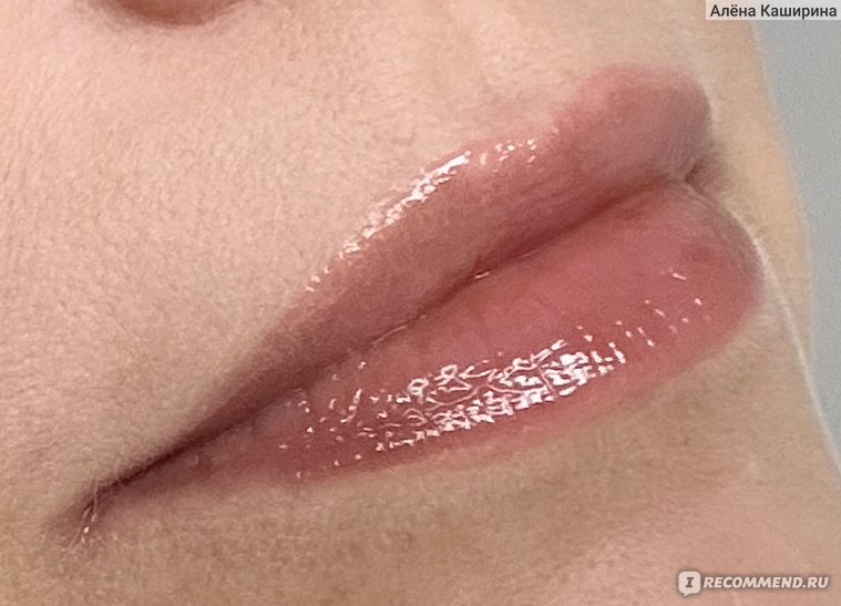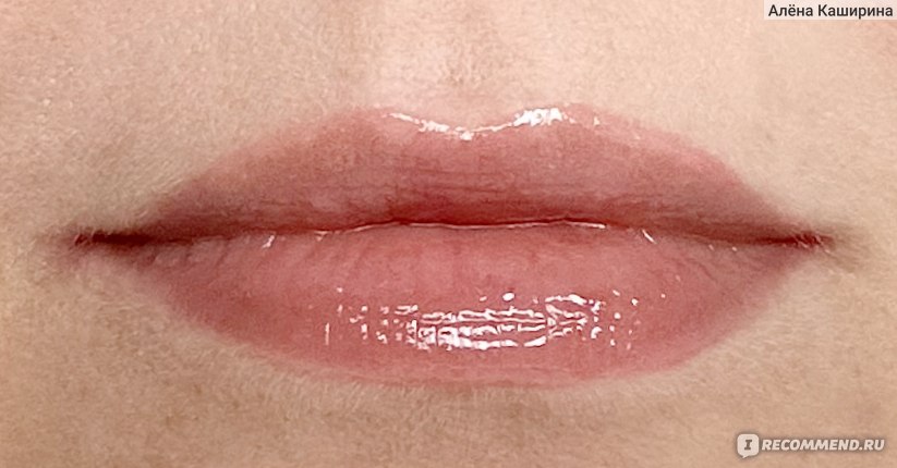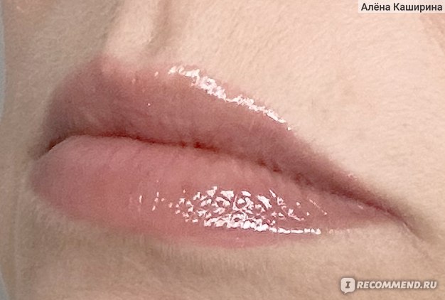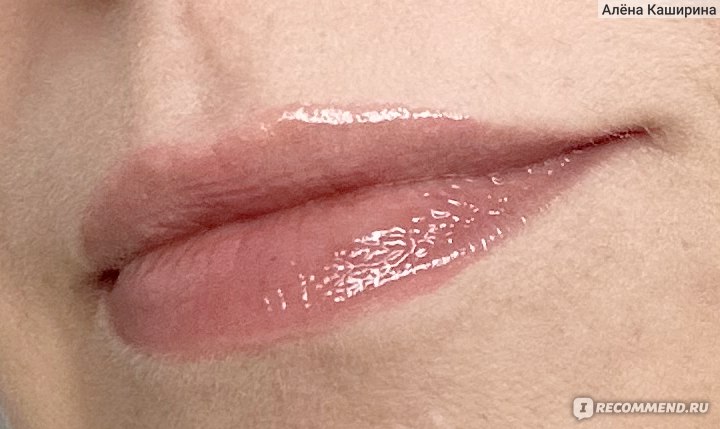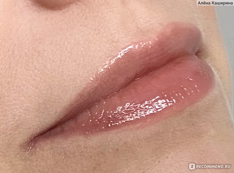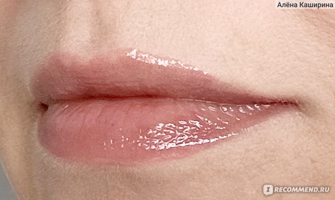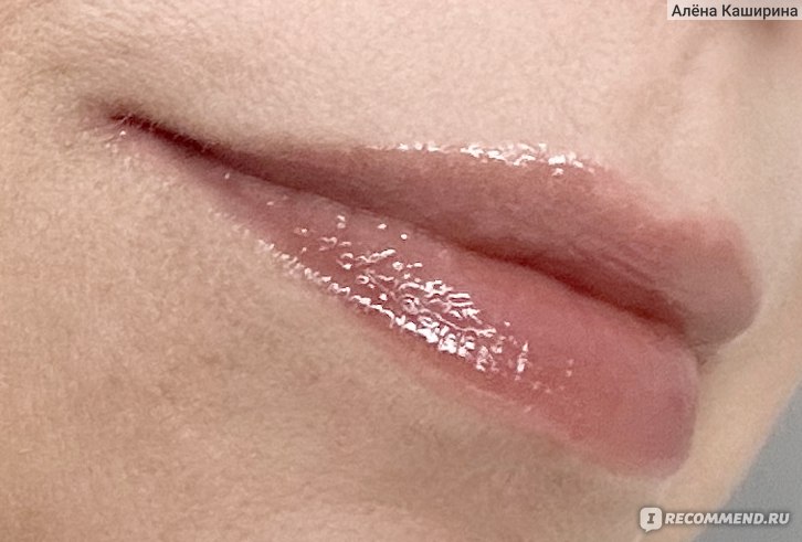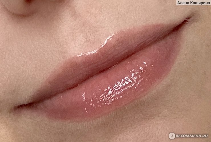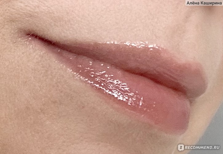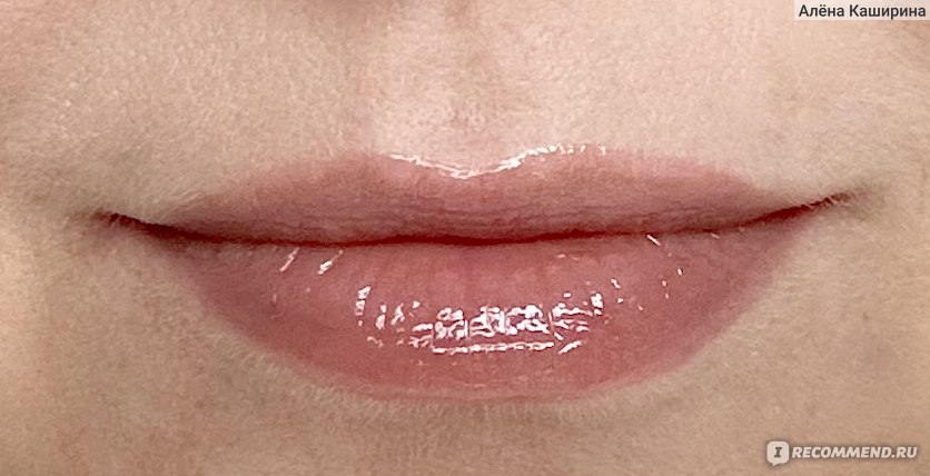 На губах выглядит реально суперглянцевым, даже избыточно глянцевым. Маслянистый, без перламутра (или я его не вижу). Он полупрозрачный на губах. Во флаконе выглядит непрозрачным, а на губах цвет почти полностью теряется. Губы, конечно, выглядят чуть ярче, чем естественный цвет губ, но реально цвет как-то теряется из-за полупрозрачности средства.