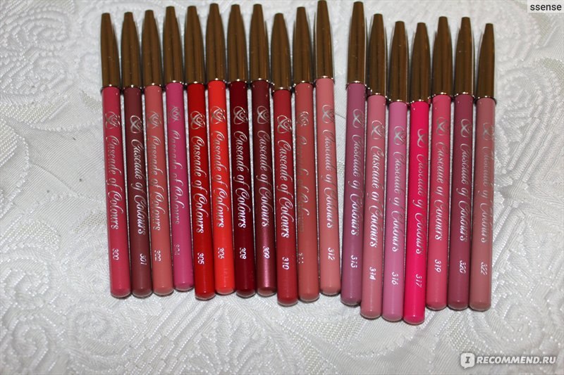 Однако, не смотря на инкогнито производителя, карандаши полюбились мне сразу же после первого применения. Не жирные, не твердые, умеренной мягкости грифель. Очень удобен для коррекции формы губ. Не течет. Я их приобрела в большом количестве, сейчас хочу рассказать Вам о 6 оттенках: