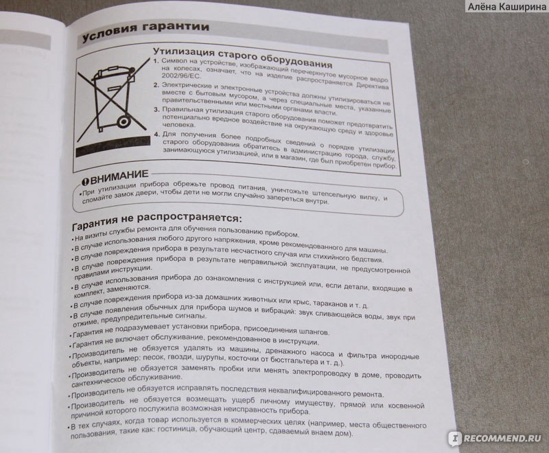 Короче, гарантия на мотор равная 10 годкам - полная бездарность, потому что рабочий мотор не означает рабочую машину и уж тем более не означает гарантированно постиранные вещи.