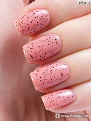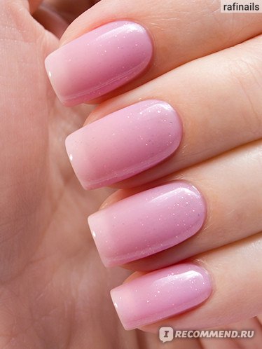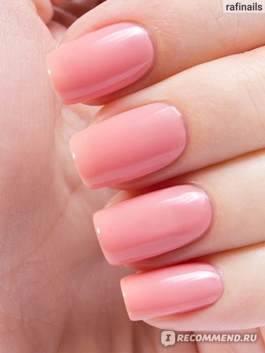 Светло-розовый оттенок. Этот лак имеет склонность к появлению проплешин, но их легко избежать — нужно просто наносить лак в несколько мазков, а не пытаться многократно проходить кистью.