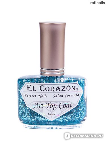 Глиттер голубого цвета заключен в прозрачной базе. Вкрапления крупного и мелкого размера и имеют шестиугольную форму. Глиттера очень много, поэтому наносить топ нужно осторожно — можно легко переусердствовать. Нанесен на №423/55: