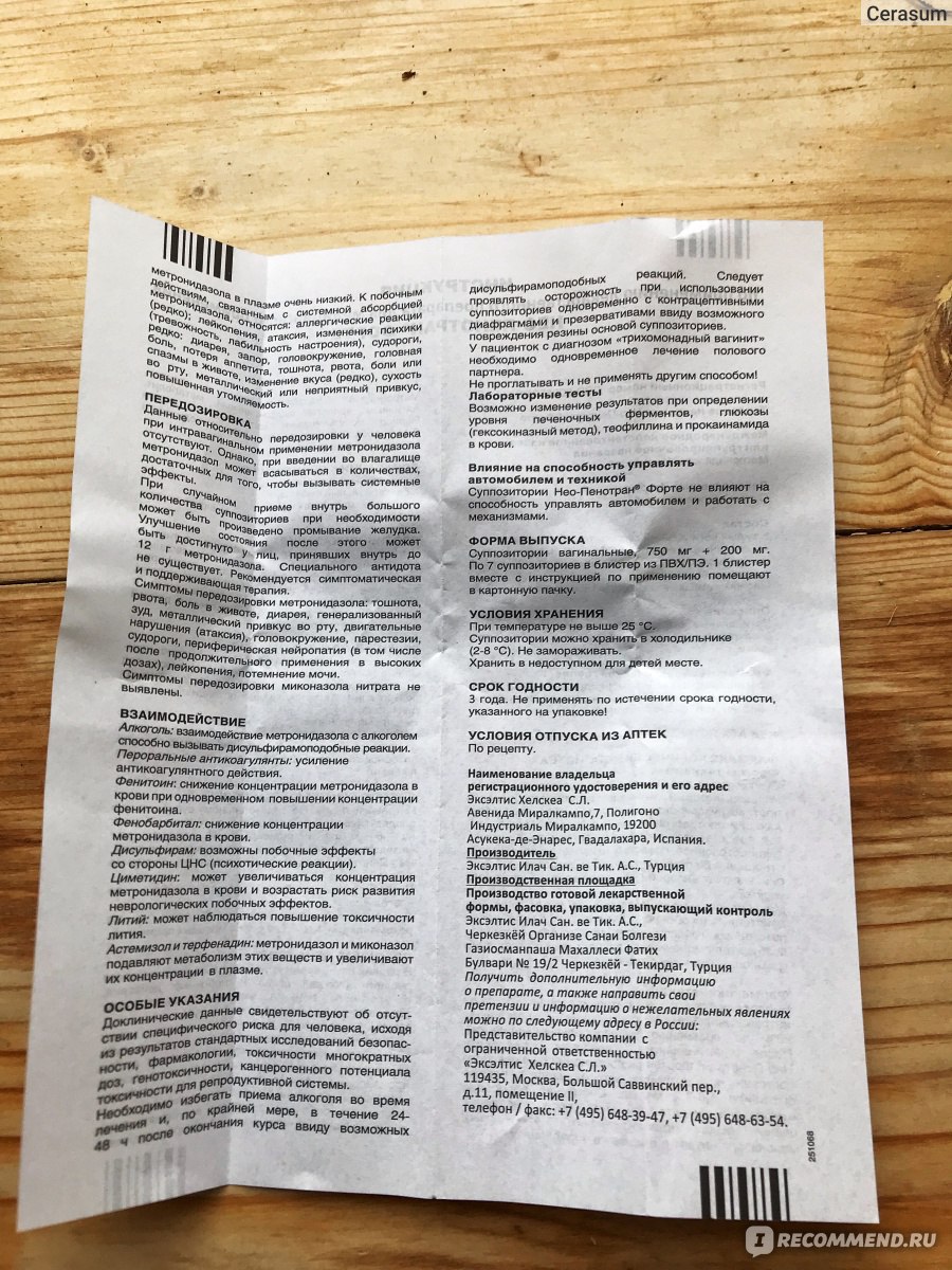 При рецидивирующих вагинитах или вагинитах, резистентных к другим видам лечения, Нео-Пенотран® Форте следует применять в течение 14 дней.