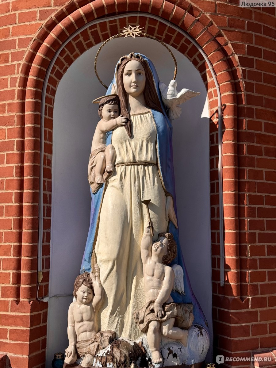 Самым первым конечно поразила архитектура костёла сочетает в себе элементы неоготики и модерна, что придает ему уникальный и запоминающийся вид. Автором проекта был польский архитектор Томаш Пайздерский. По размеру достаточно большой, а фасад костёла украшают скульптуры святых, выполненные в реалистичном стиле.Жаль что он был закрыт и опечатан и нам не удалось попасть внутрь, но мы успешно подглядели и увидели много пыли и забытые комнатные цветы.