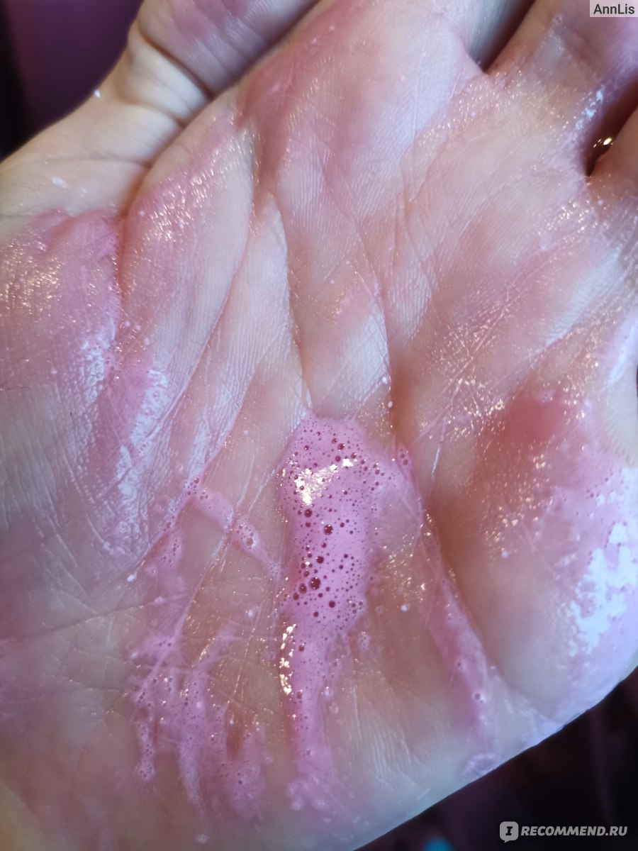 Я использую энзимную пудру по настроению, примерно 2-3 раза в неделю, обычно во время утреннего ухода. Способ применения классический, немного пудры насыпать на ладонь, добавить небольшое количество воды, вспенить. При добавлении воды пудра от The purest solutions становится ярко-розовой, даже немного отдаёт в алый. По мере вспенивания обратно приобретает более бледный розовый цвет.