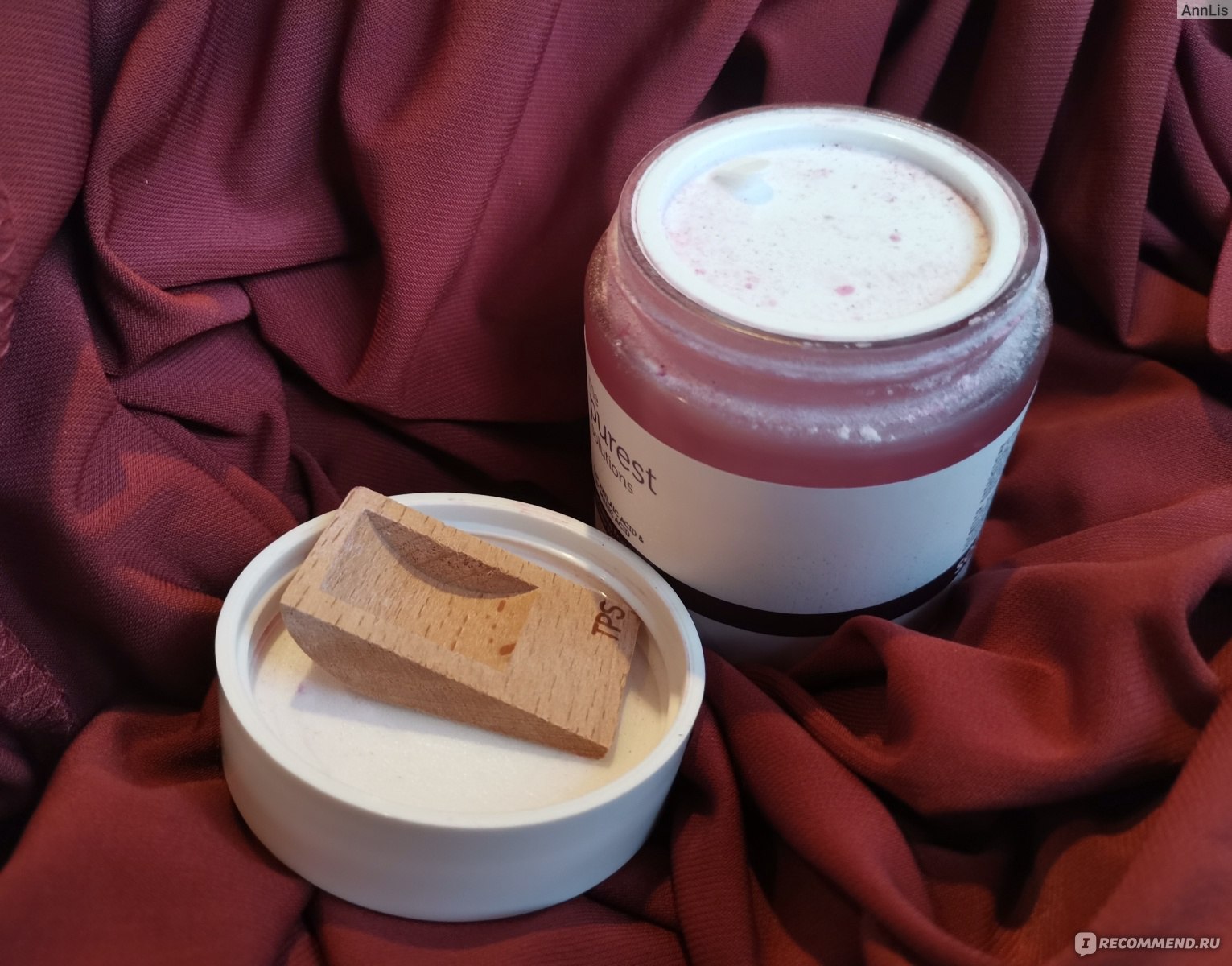 Помимо баночки с пудрой, внутри есть деревянная лопатка ( если её можно так назвать). На деле она оказалась очень неудобной, и с ней плохо, и без неё плохо. Бренд делает большой акцент на экологичности товара и заботе о природе, поэтому избегает пластика.
