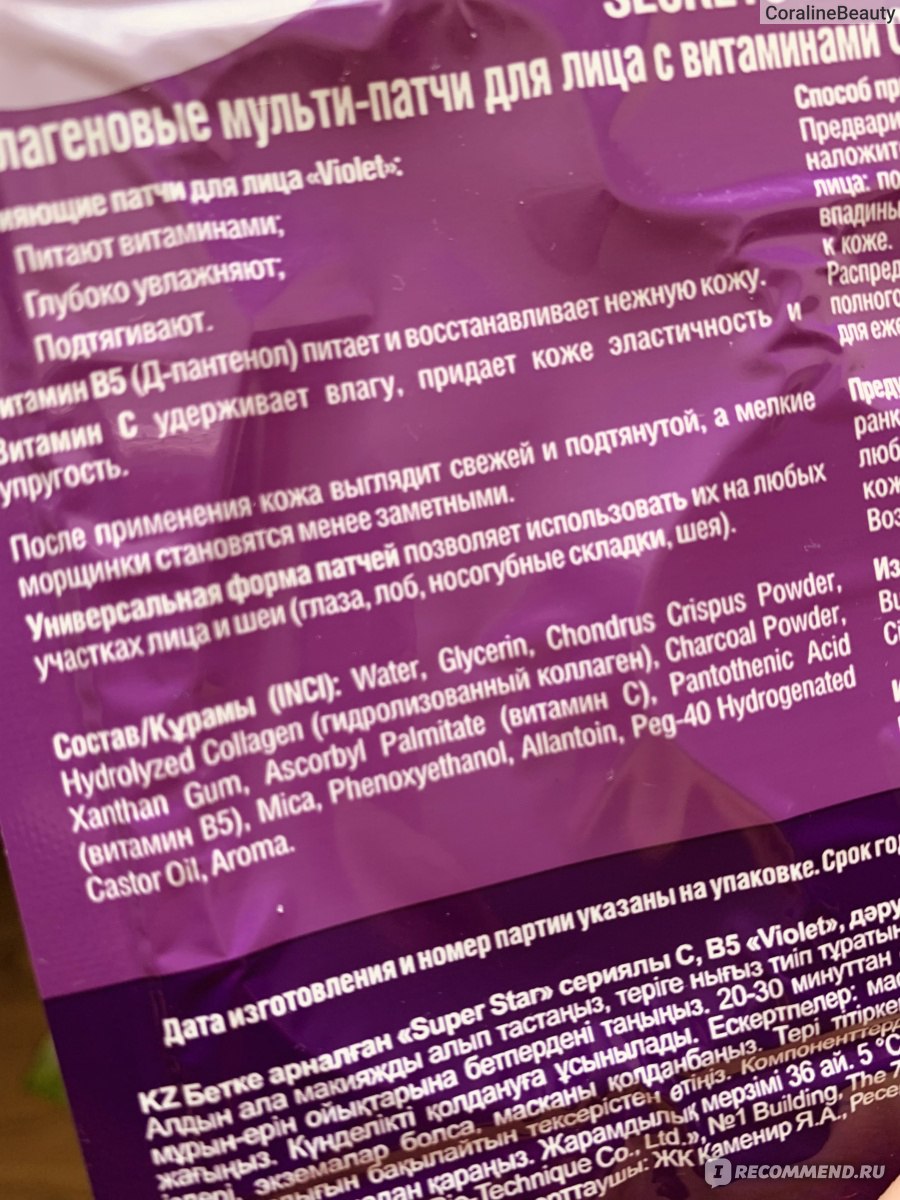 Коллагеновые мульти-патчи для лица с витаминами С, В5 Violet Secrets lan Super star