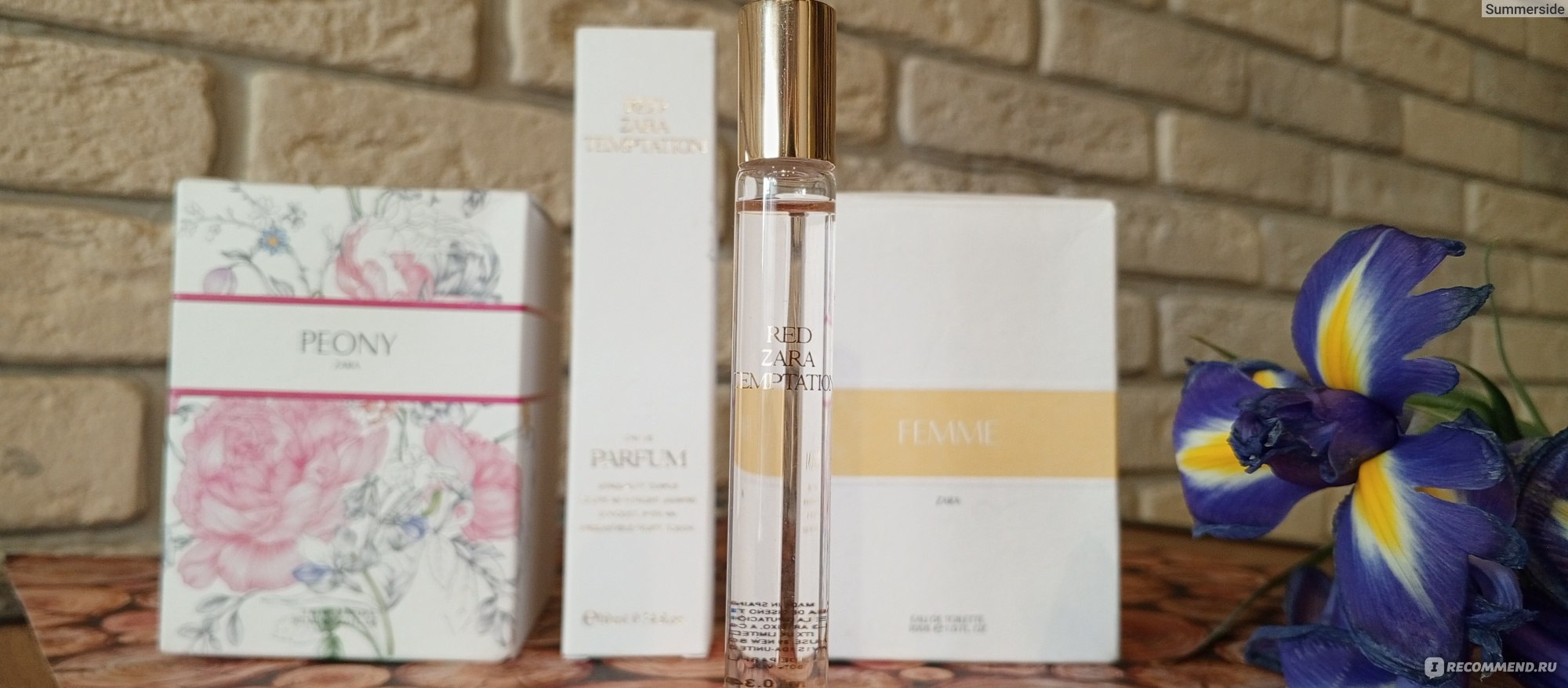 Моя последняя "парфюмерная обновка" на фото ниже, среди них и несколько ароматов из магазина Зара, пион и Ред Темптейшн: