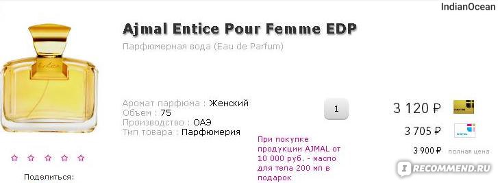Да, все верно, насколько я знаю, он продается только в Рив Гош. Читала, что некоторые девочки заказывают Аджмал в интернет-магазинах, там дешевле, но единственный минус - заранее не попробуешь. Просто я живу не в России, у нас Entice стоит в пересчете на рубли - 700 руб и мне кажется, что Рив Гош уж слишком накрутили цену. 😲