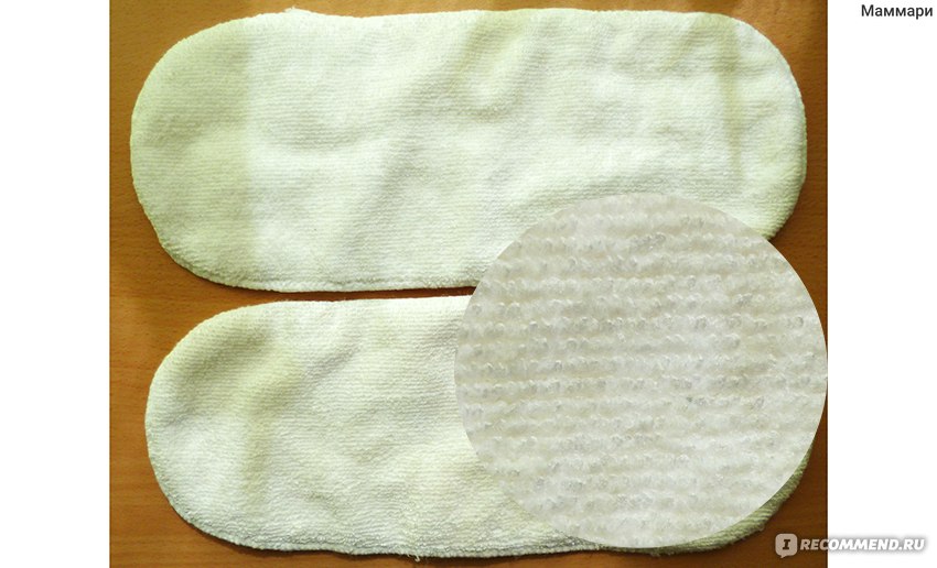 Слева внешняя поверхность оболочки подгузника, справа поверхность флисового кармана