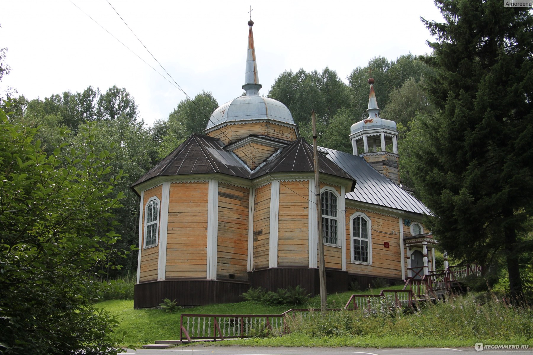 Через дорогу от источников находится деревянная церковь Святого Апостола Петра, построенная по плану Петра I.