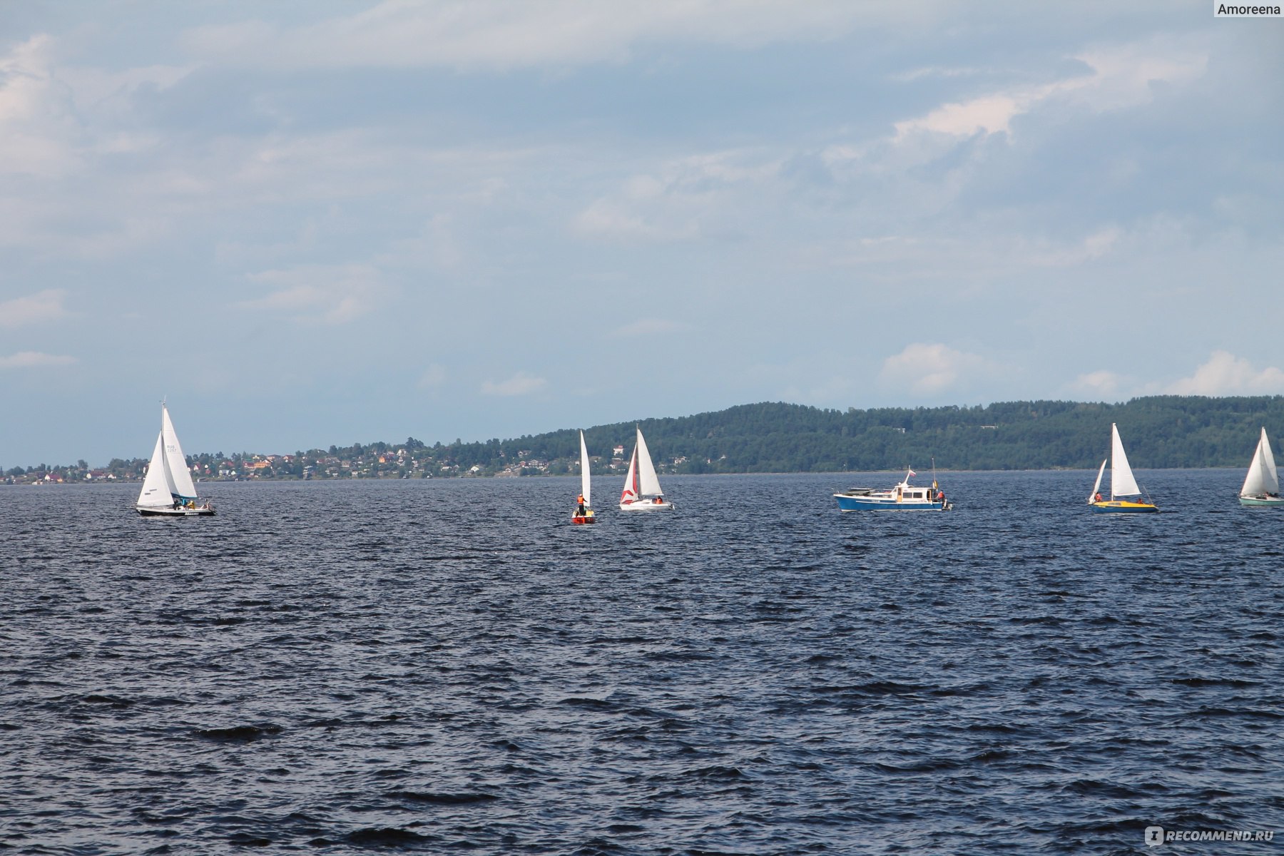 В один из дней на Онежском озере проводилась регата, на воду вышли белые паруса: