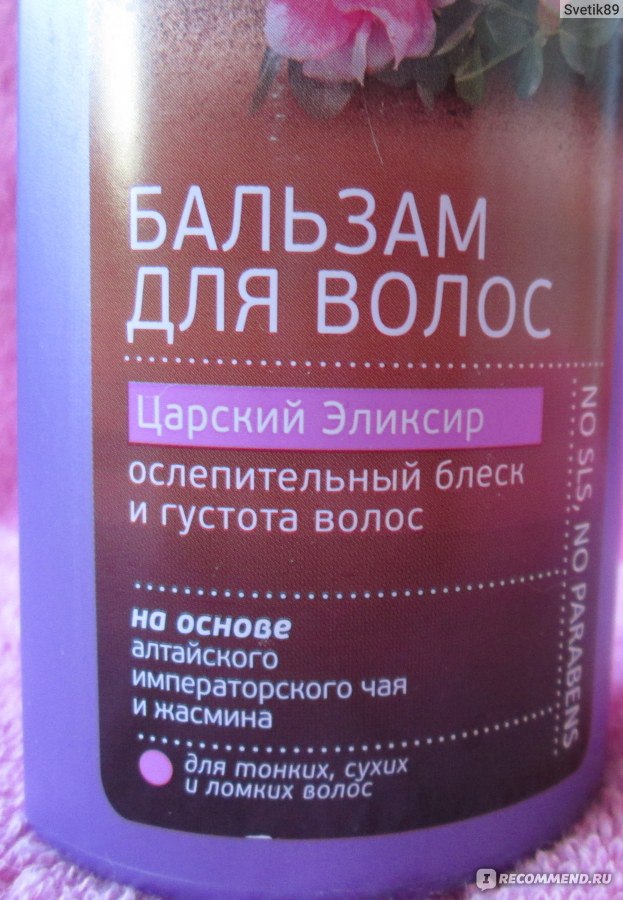 В составе бальзама присутствует алтайский императорский чай, который питает волосы, придаёт им мягкость, гладкость и блеск. Так же в основе компонентов есть жасмин, экстракт которого предотвращает ломкость волос, питает по всей длине, придаёт шелковистость и блеск.
