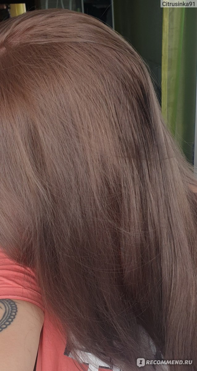 При окрашивании краска те течёт, не щиплет и не воняет. Результатом я довольна, волосы приобрели натуральный пепельный русый цвет. С последующим мытьем головы постепенно вымывается фиолетовый и теперь мои волосы моего натурального цвета!