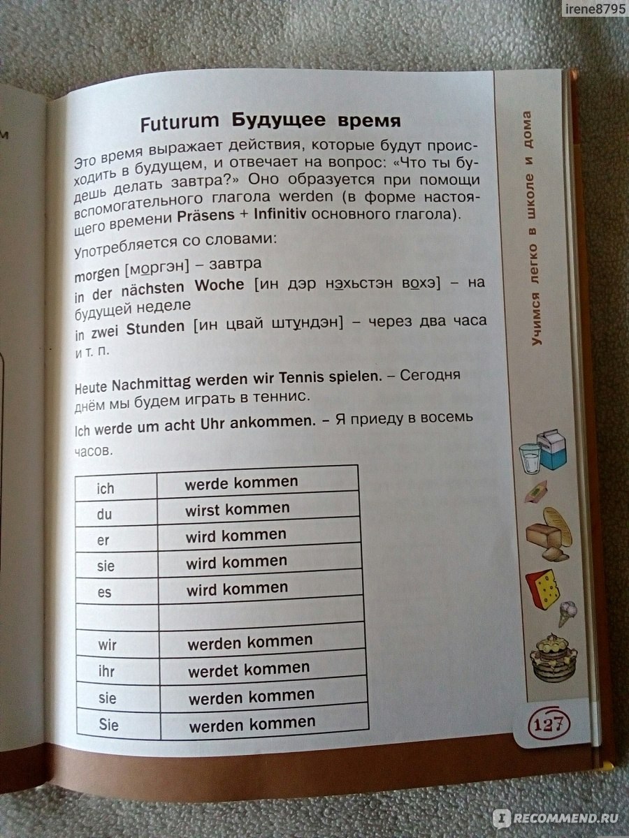 Например, будущее время будет рассматриваться чисто теоретически на странице 127, далее в практике оно нигде не встречается.