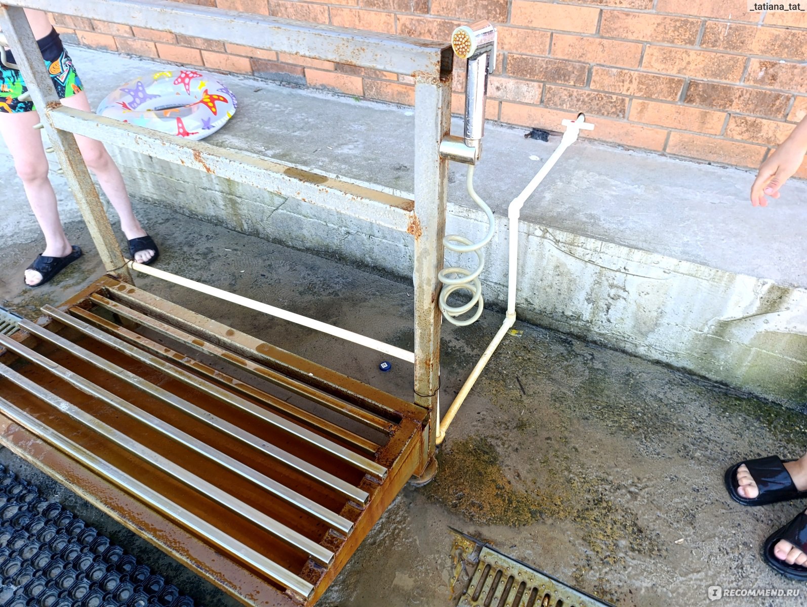 После пляжа можно помыть ноги на улице. Там есть 2 лейки, из которых еле-еле течёт холодная вода. Потом вообще вторую лейку оторвали.