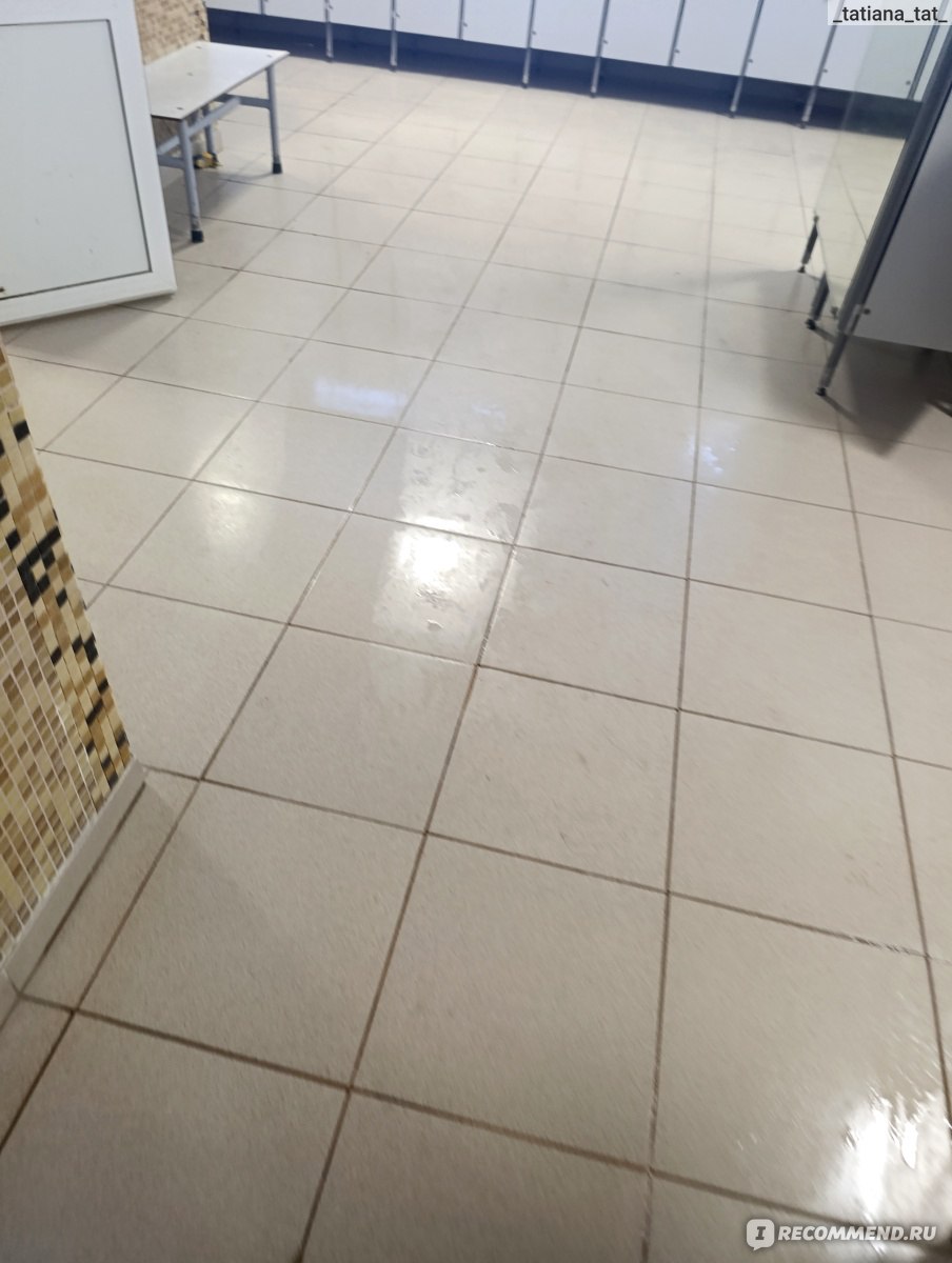 То вот в помещении, где располагаются кабинки с душем, и в раздевалке каток. Сразу где заканчивается покрытие - очень скользко. Я сама несколько раз чуть не упала, а вот девочка, идущая передо мной упала.