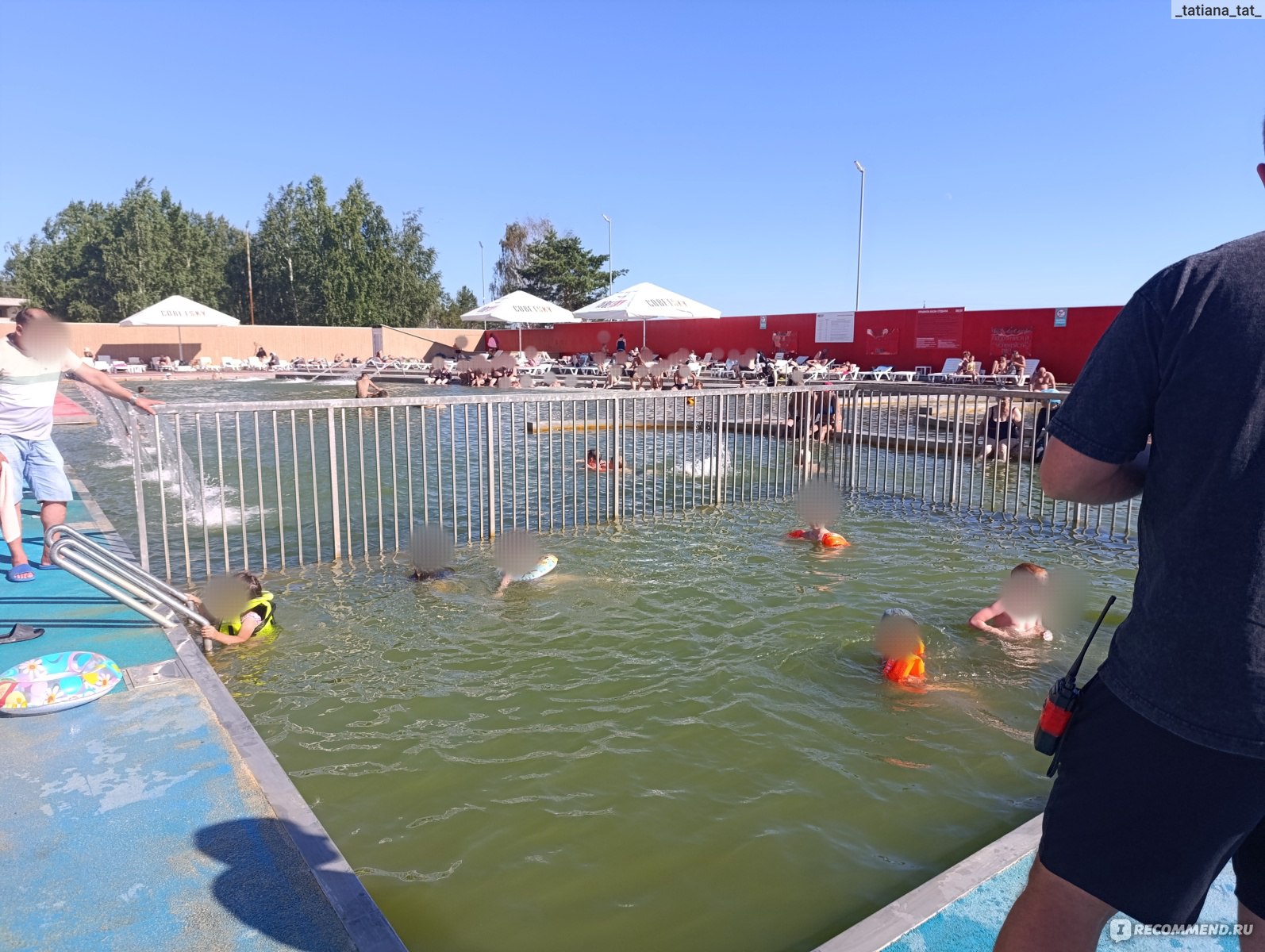 Здесь бассейн 1. Для детей огорожен небольшой участочек. Там небольшая глубина. Детей много, в этом лягушатнике тесно. Это мы уже в другой заход зашли, здесь народа не много.