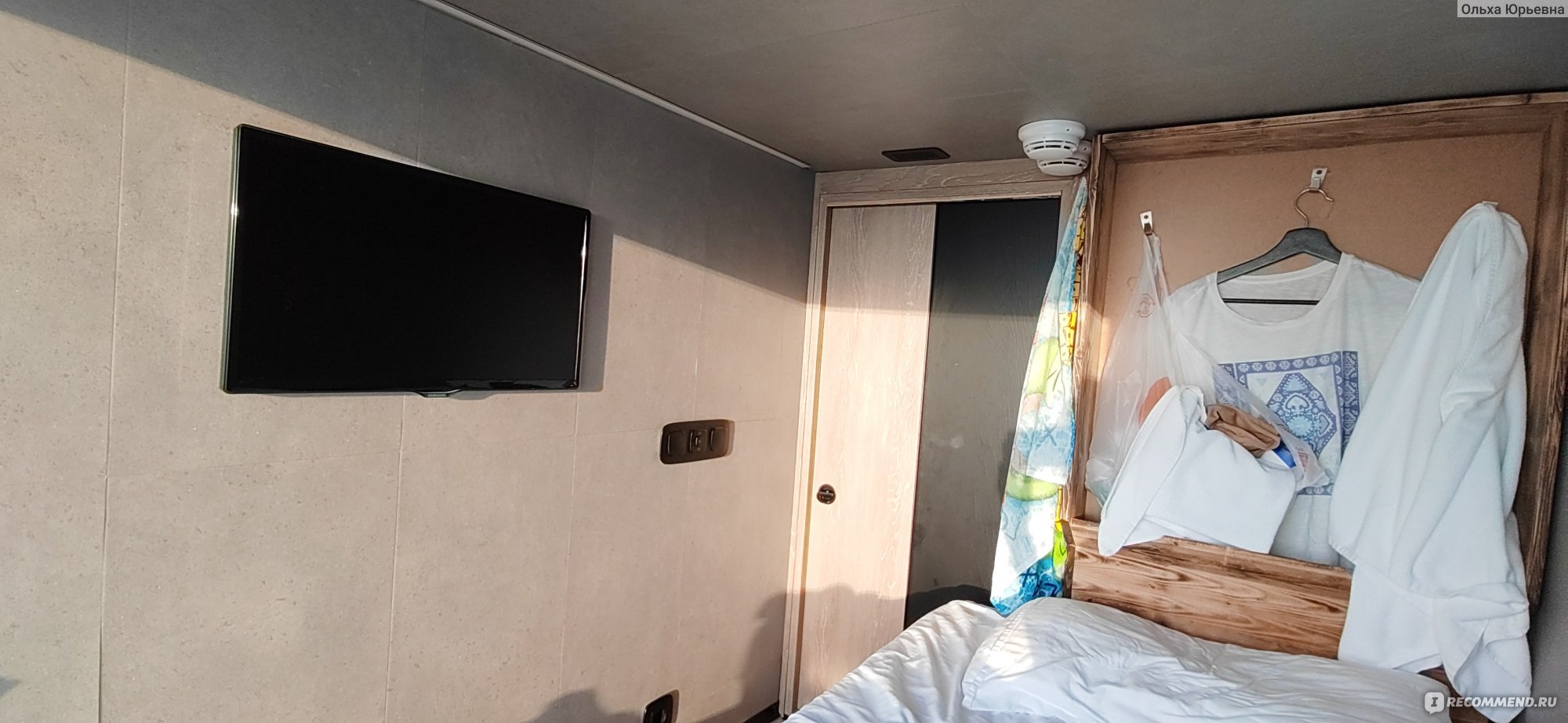Да, комнатки маленькие, стоять в полный рост не получится (мой рост 163см). Но мы приехали не стоять) Капсула с панорамным окном, кроватью, ТВ, тумбой и вешалкой. На постели уже чистое бельё и прилагаются полотенца . Дверь запирается только изнутри. Снаружи можно её просто прикрыть, без замка. Мы брали на 1 уровне, не хотелось пользоваться лестницей. В отеле два душа и три туалета, если я не ошибаюсь. Души узкие, миниатюрные. Страшно было налить слишком много воды, чтобы она не потекла через порог. Ванные комнаты закрываются складными дверьми. И дверь эта всё время подвергается воздействию влаги. Не уверена, что это долговечно, но портить имущество не хотелось. Есть гладильная комната с кондиционером. Присутствуют платные услуги прачечной (при нас парень стирал вещи в машинке в хозяйственной комнате за отдельную плату).