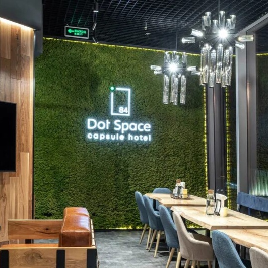 Поднялись на скоростном лифте, заложило уши. Не критично. Далее проходим направо, выходим из тамбура в коридор с дверьми. Для открытия некоторых дверей потребуется нажать кнопку и подождать. В следующем коридоре интуитивно ищем нужную дверь. Там есть двери без опознавательных знаков, есть офисы и салоны с логотипами. По нажатию заходим в нужную дверь. При входе в гостиницу - стойка ресепшен. Там администратор быстро оформляет заселение, подписываем договор, получаем белые тапочки и идем смотреть капсулу!