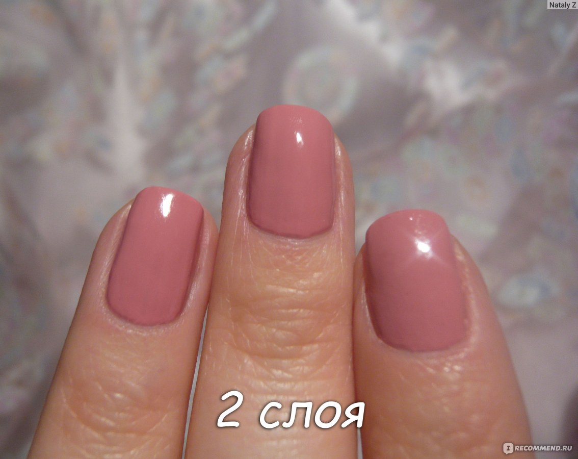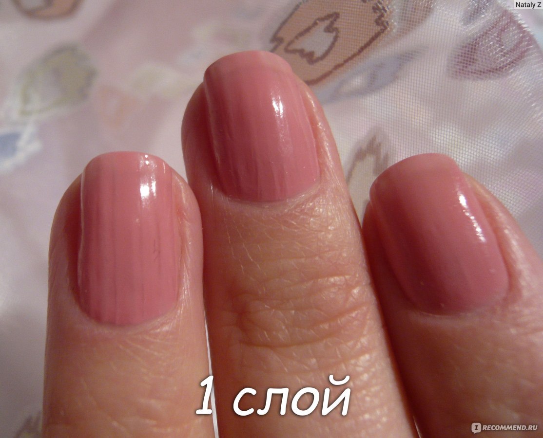 Кисточка стандартная, среднего размера, ворсинки немного не ровные, но накрасить ровно получается. В один слой покрытие получается полупрозрачное и неравномерное. Немного просушиваю первый слой и наношу второй - у меня ногти сильно ребристые и одного слоя ни с каким лаком недостаточно. Со второго слоя покрытие плотное, равномерное, проплешин нет. Сохнет быстро - два слоя около 10 минут.