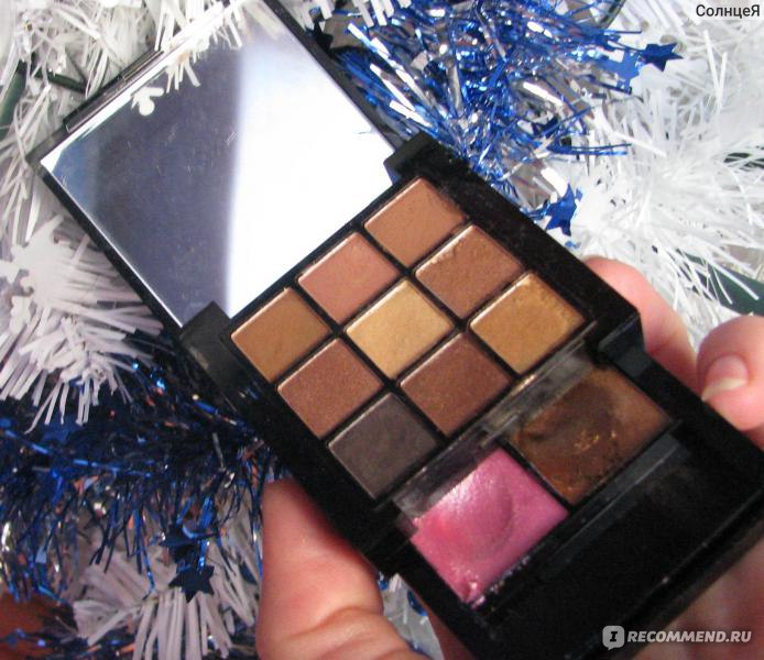 Nyx 10 Color Eyeshadow Palette The Ranway Collection # 01 Jazz Night, которая побывала у меня в руках - очень качественные коробочки, ни намека на хлипкость, палетке моей уже год - ничего не отваливается и не разваливается ))) Единственный несущественный минус - спонжики (один для глаз, второй для губ), их я выкинула сразу - они были ужасны, тени наношу спец кистью, а блески для губ удобнее распределить пальцами.