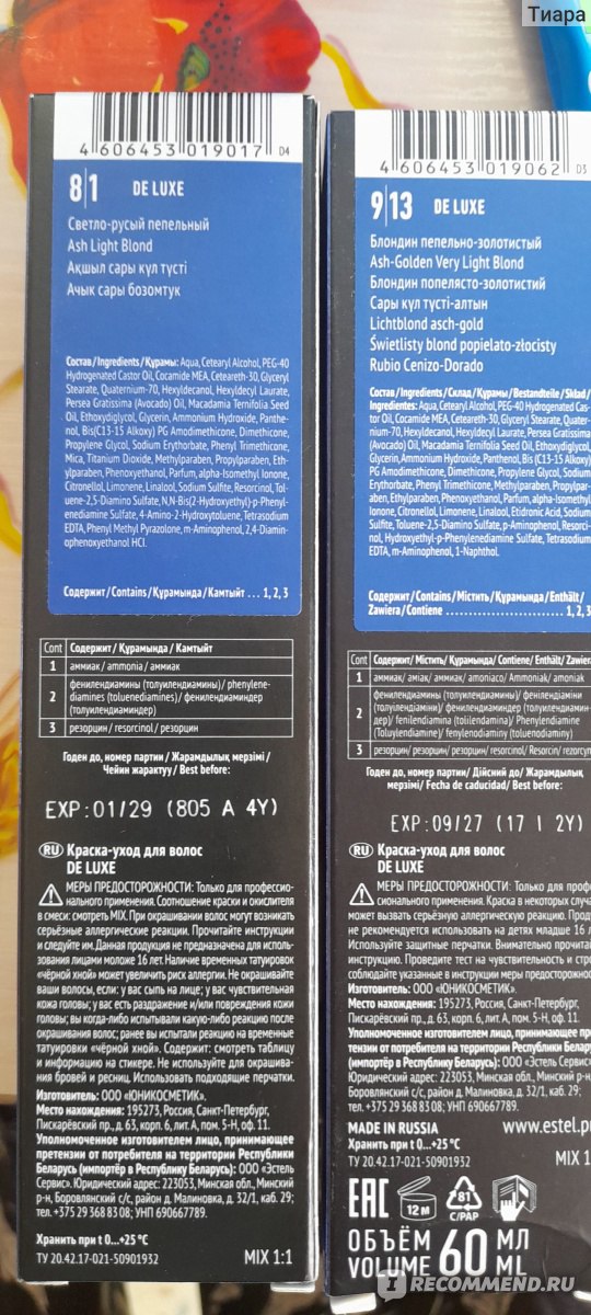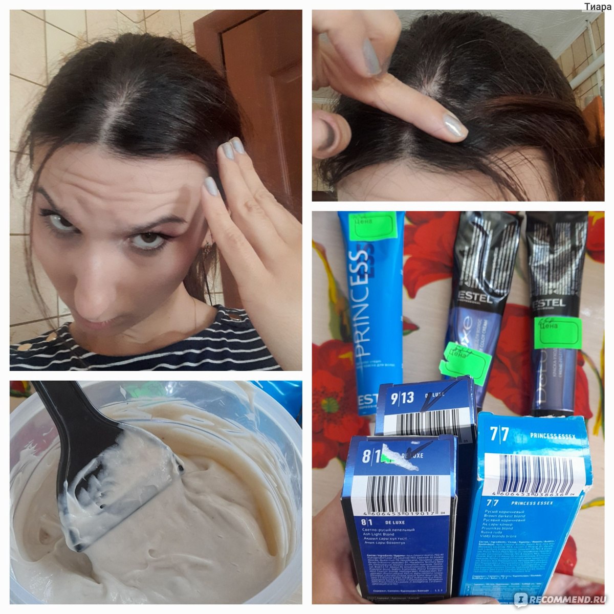 Всем привет! Отросли корни волос, крашу полностью волосы краской Estel De Luxe 8.1 и 9.13, а также смешиваю с классической (голубой) Estel 7.7 на оксиде 6% другой марки.