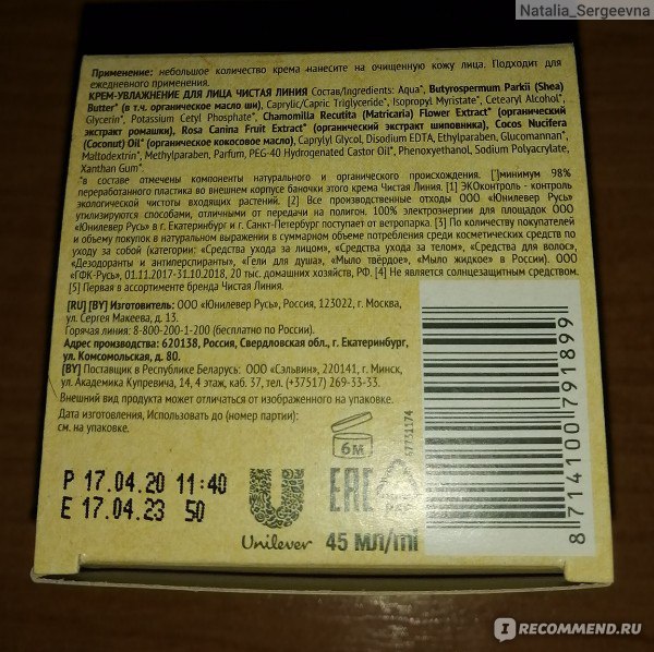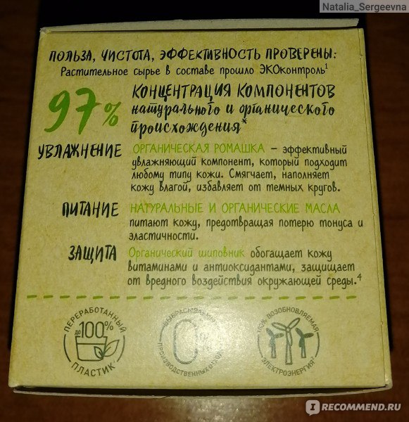 Крем-увлажнение NATURA не содержит: спирт, парабены, силиконы, искусственные красители.
