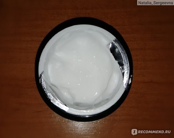 Она очень красивого тёмно-зелёного цвета, с откручивающейся крышкой, без особых надписей. Под крышкой была защитная мембрана- защита от вскрытия и протекания крема. Кстати, открыть её было проблематично.
