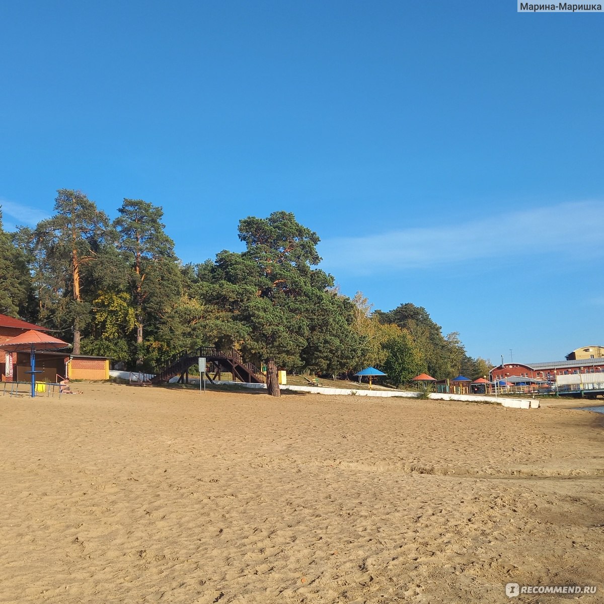Летом здесь можно отдохнуть воды. Могу отметить неплохой песчаный пляж, причём он достаточно протяженный. На пляже есть туалет, кабинки для переодевания, несколько качелей, несколько грибочков-беседочек с крышей (вот их мало, и конечно - если приезжать не с самого раннего утра, то они заняты всегда :)).