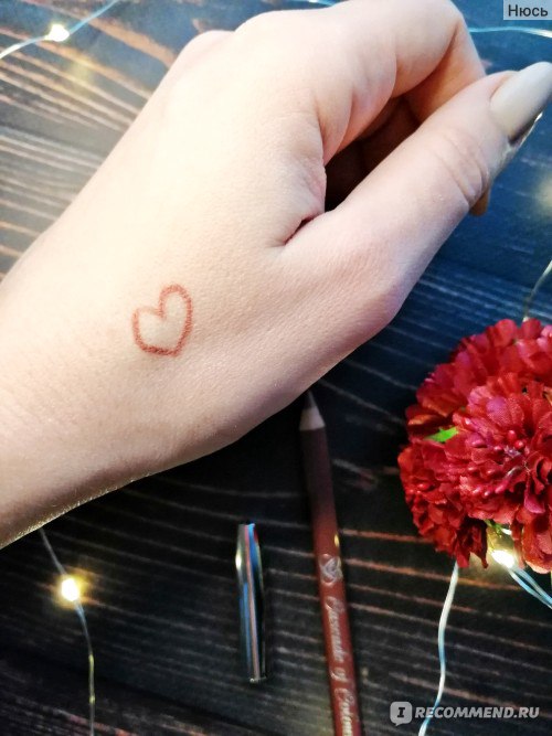 Текстура у карандаша твёрдая. Это прям меня покоробило. Он настолько твердый, что немного царапает кожу. И это не очень приятно. Я хотела нанести его не только контуром, а полностью покрыть губы, но у меня не получилось. Он как будто очень сухой, такой как настоящий цветной карандаш.