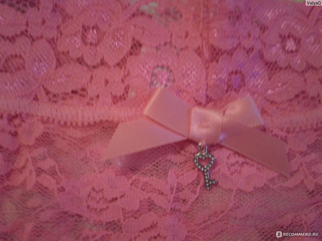 На трусиках и бюстгальтере имеется декоративное украшение - бантик, к которому пришит ключик.