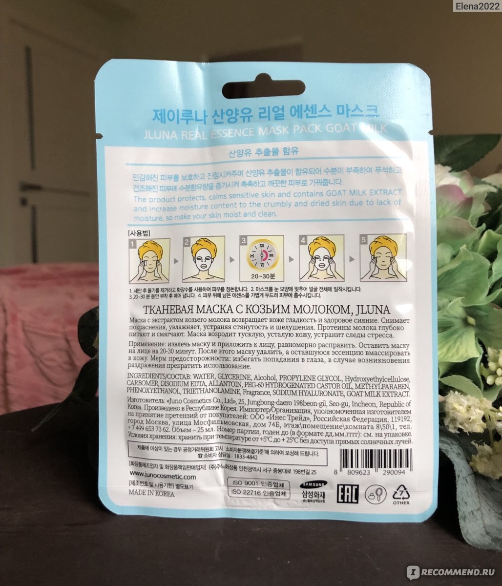 Маска для лица Jluna Juno Real Essence Mask Pack Goat Milk мне понравилась, она оказалась вполне годной и эффективной. Единственное, не очень понравилась ткань и лекало.