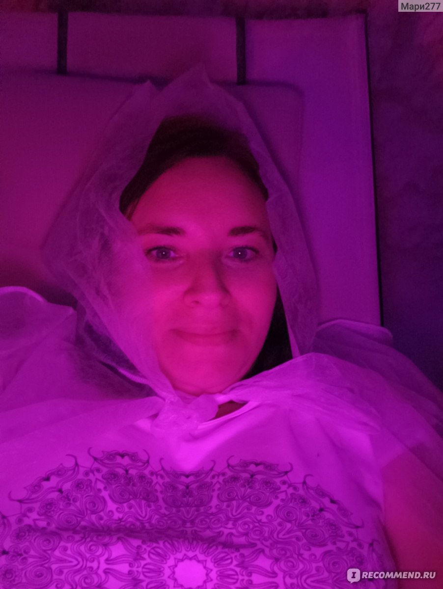 Лежаки как на море. Перед процедурой выдают костюм и бахилы.
