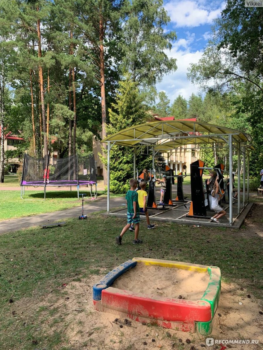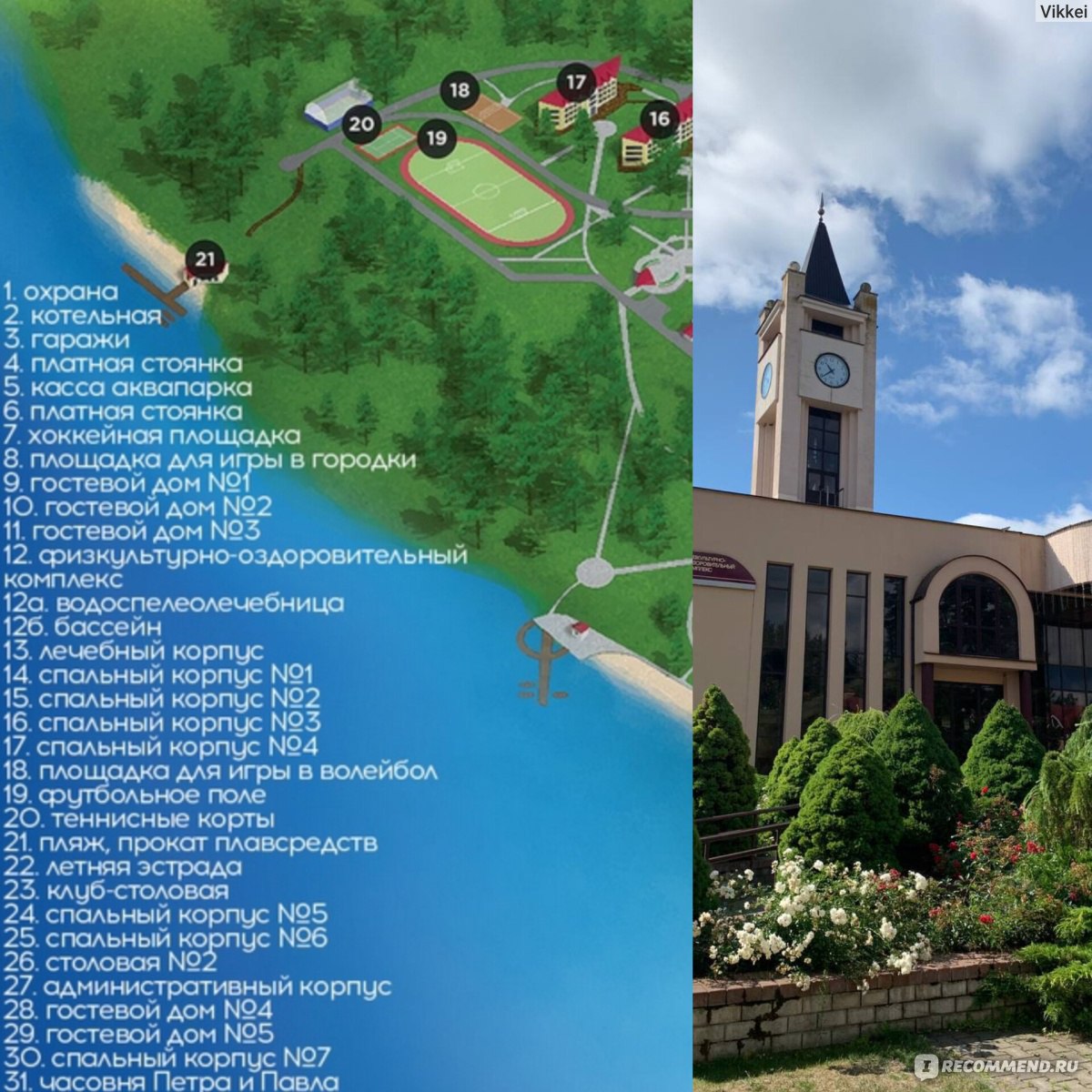 На территории расположены как спальные корпуса (7шт) так и гостевые домики (5шт), водолечебница, административны комрпус, площадки для игр, детская площадка, облагороженная пляжная зона вдоль озера, много всего...