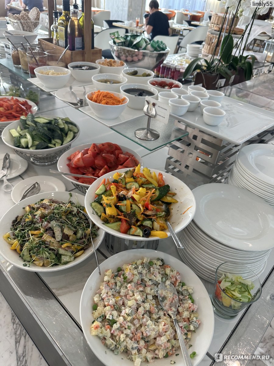 Если говорить о еде, то она там очень... интересная) Вроде бы и салат оливье, и тебе красная рыба, и бутерброды с авокадо... Но сказать, что это безумно вкусно я не могу. Не знаю почему, но еда действительно не такая уж и вкусная (