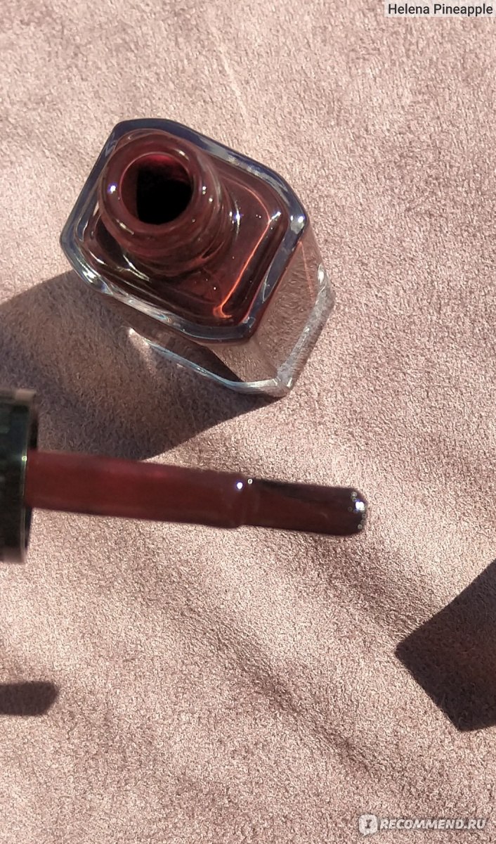 Оттенок 125 - это темный, глубокий оттенок горячего шоколада, на первый взгляд бордовый, цвет тёмной спелой черешни, но всё же он скорее шоколадный, в нем присутствует мельчайший серебристый шиммер, которого не видно на ногтях как такового (это не перламутр), но за счёт него покрытие выглядит глянцевым и сияющий, придаёт какой-то лоск.