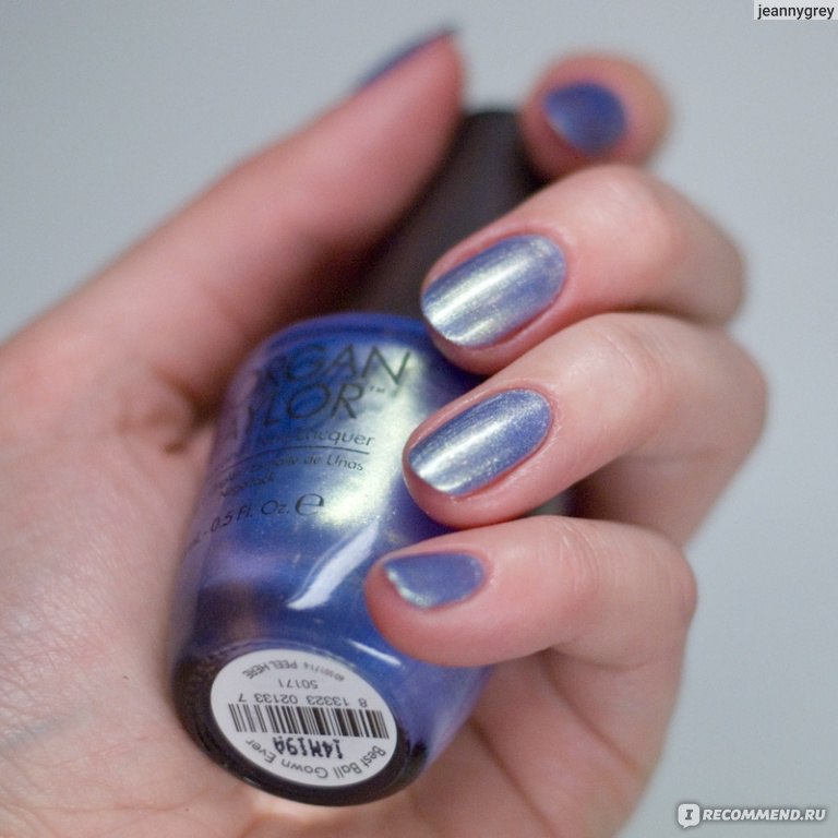 Morgan Taylor Best Ball Gown Ever - васильково-золотой перламутр. Вы видели бальное платье Золушки из фильма? Так вот, это то самое платье на ваших ногтях. Для перламутра - удивительно беспроблемно наносится, но может подчеркивать неровности ногтевой пластины. Носится, опять же, как прибитый. Из личных наблюдений - аккуратнее смотрится на относительно коротких ногтях, для длинных слишком уж много перламутра 😊