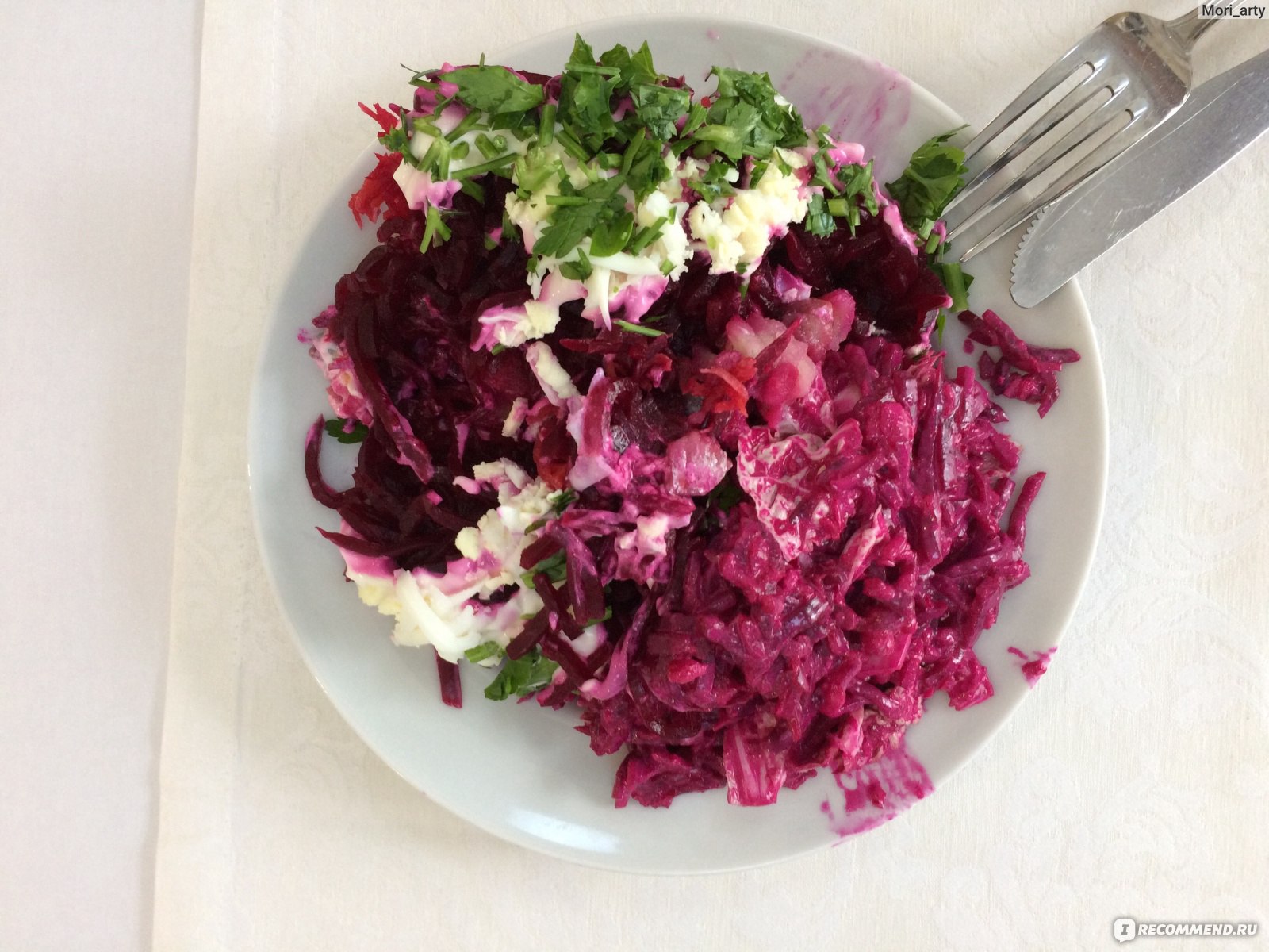 Салат "селедка под шубой" был практически без селедки, а свекла с чесноком - без чеснока, просто безвкусная вареная свекла, даже не соленая... зато с листьями китайской капусты... эх, пропадали видимо.